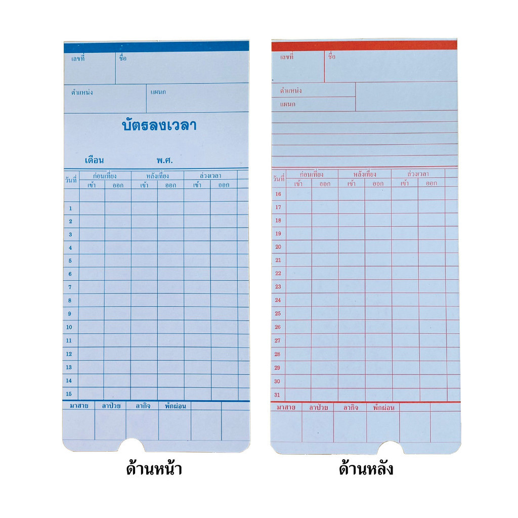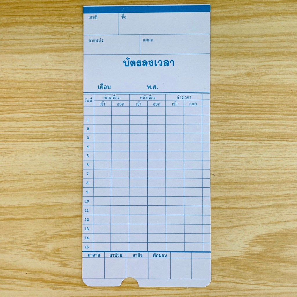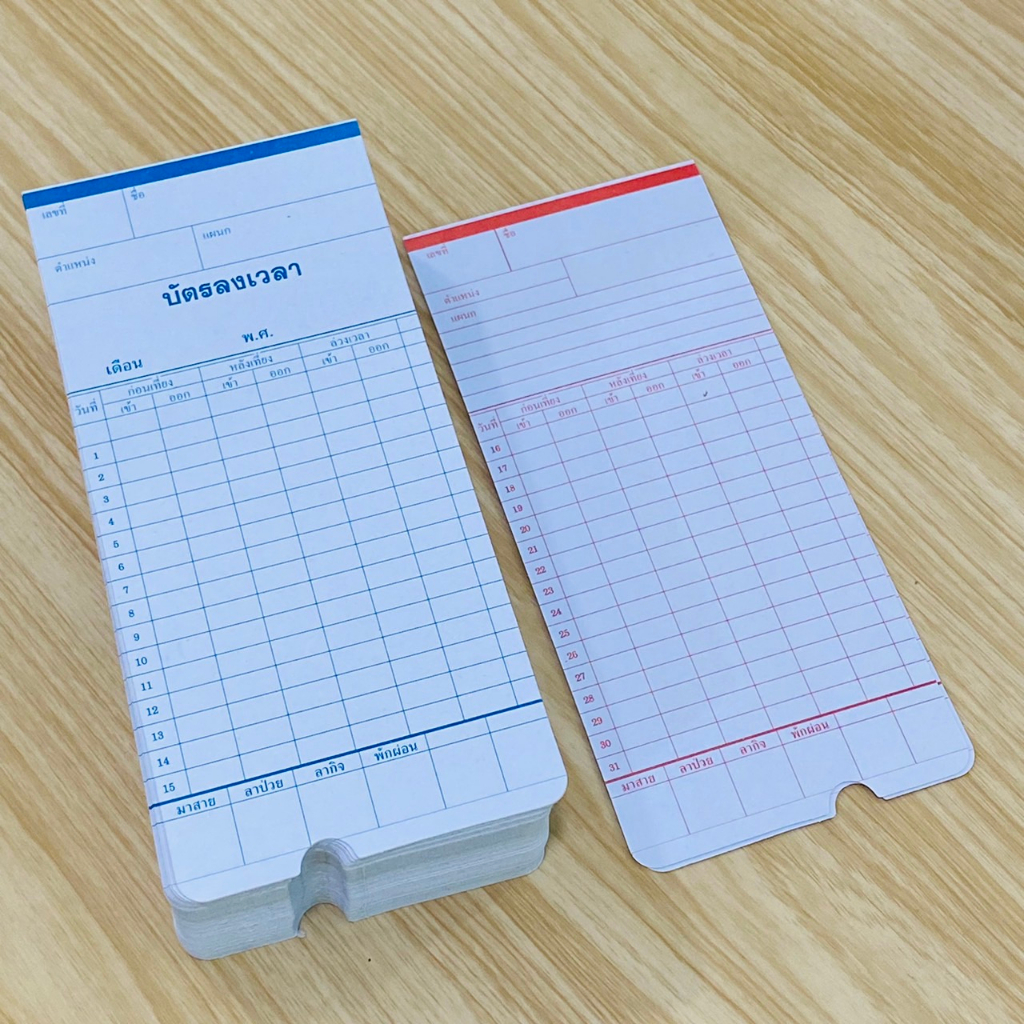 บัตรตอกลงเวลาเข้างาน บัตรพนักงาน ขนาด 8.5x18.2 ซม. ใช้ได้ทุกเครื่อง ราคาถูก กระดาษแข็งแรง พร้อมส่ง