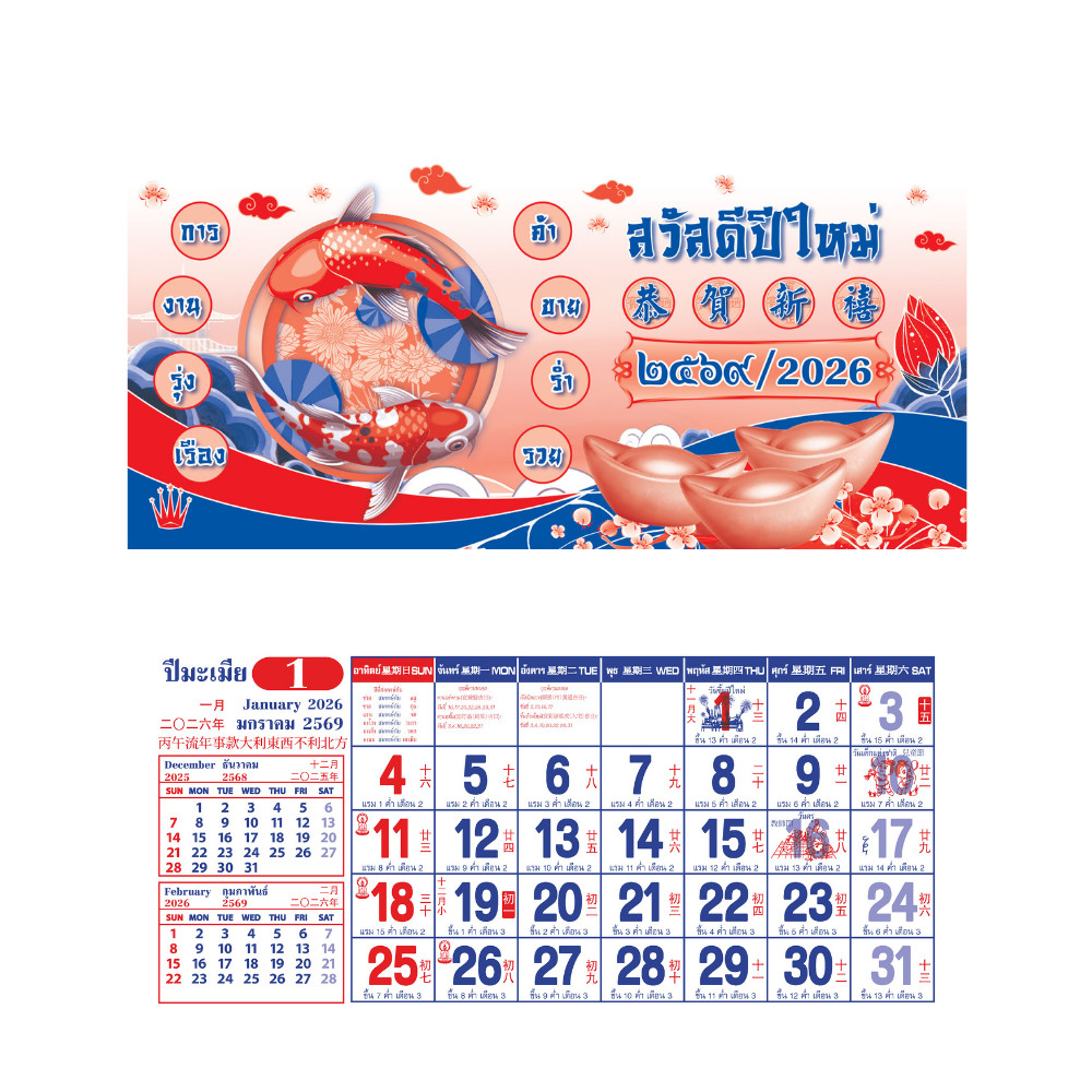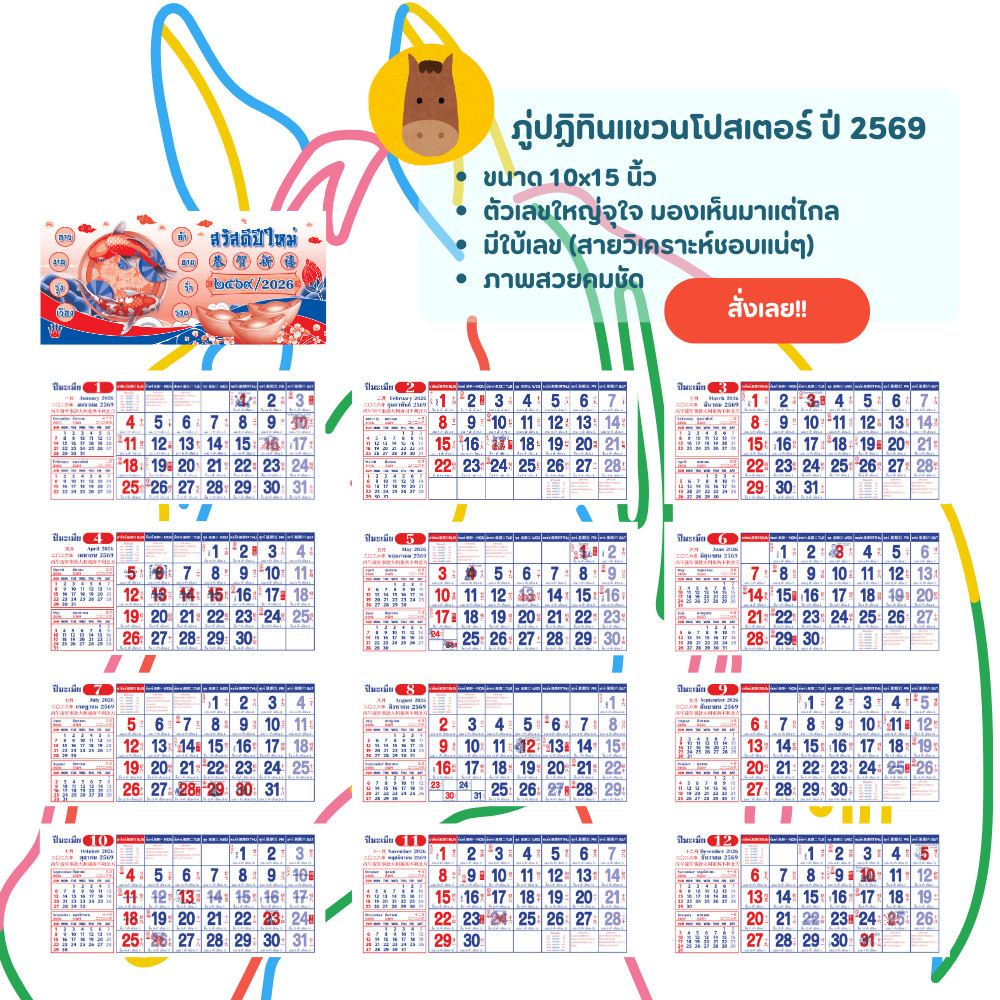 ภู่ปฏิทิน 2569 พู่ปฏิทิน 13แผ่น ขนาด 7x15 นิ้ว ภู่ปฎิทิน 2026 ปฏิทินจีน โปสเตอร์ พร้อมส่ง