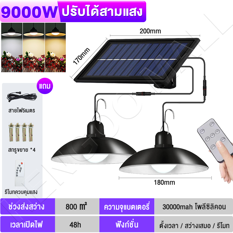 ไฟโซล่าเซลล์ พวงกุญแจน่ารักๆ ไฟโซล่าเซล ไฟโซล่าเซลล์ติดเพดาน 2000W โคมวินเทจ แสงสีขาว/เหลือง/อุ่น โคมไฟ ติดผนัง