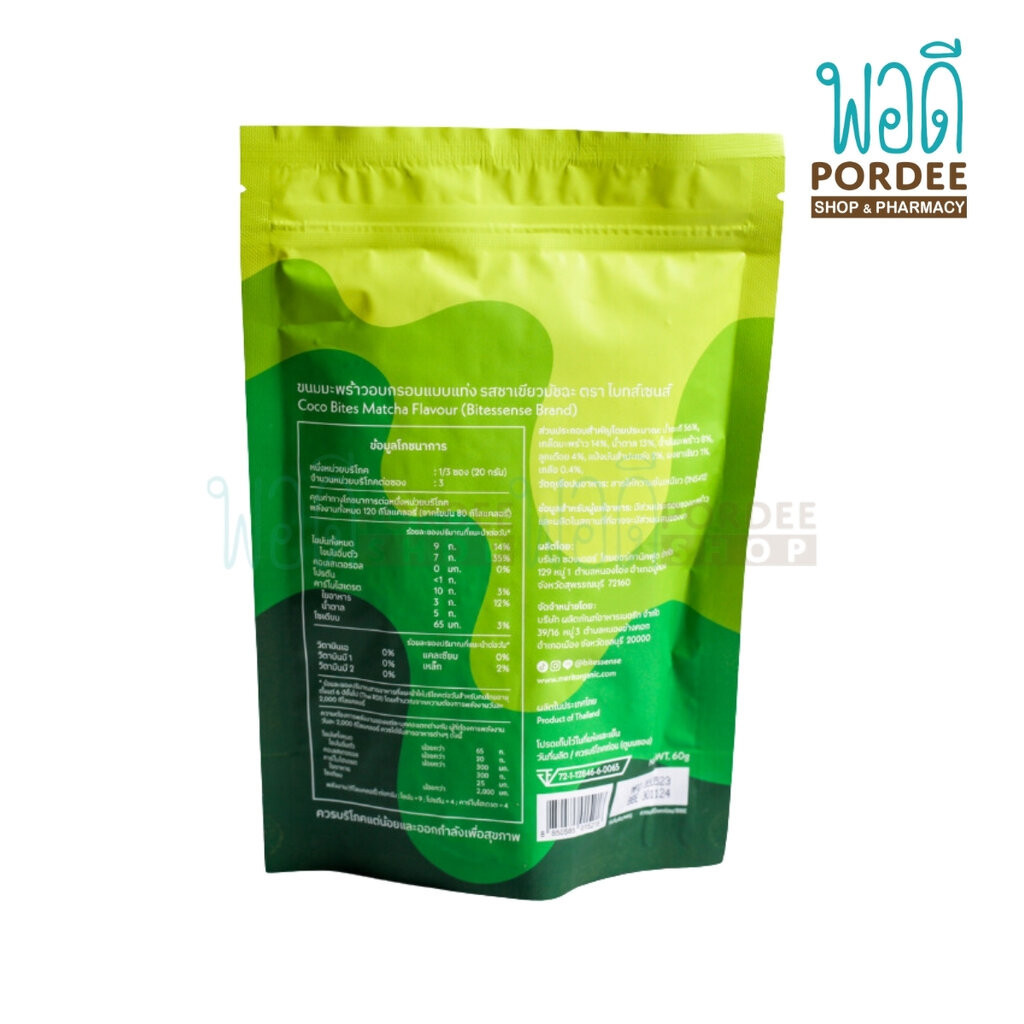 Bitessense Coco Bites ขนมมะพร้าวอบกรอบแบบแท่ง (รสชาเขียวมัทฉะ) 50 กรัม