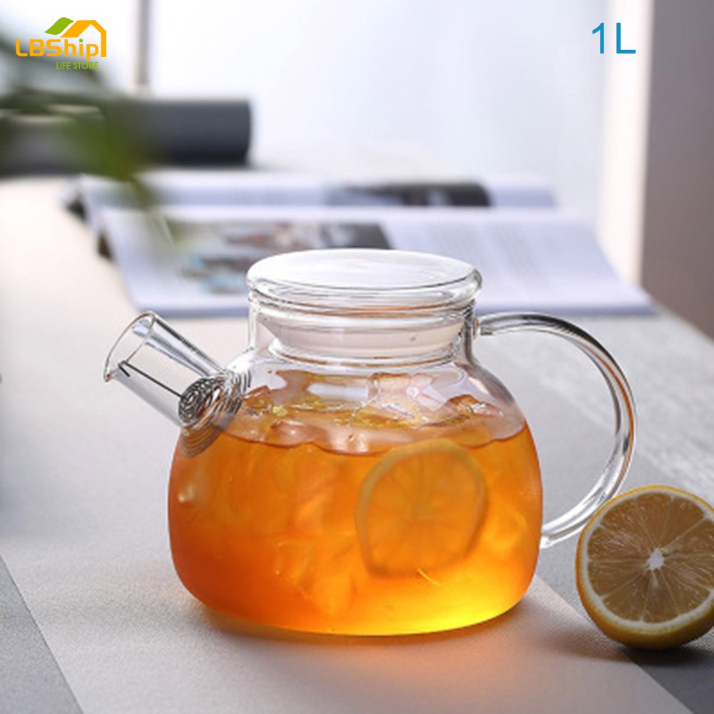 Lbship โฮมออฟฟิศ 1000ml / 1600ml แก้วกาต้มน้ำเหยือกน้ำทนความร้อนกาน้ำชาพร้อมฝาปิดโปร่งใส