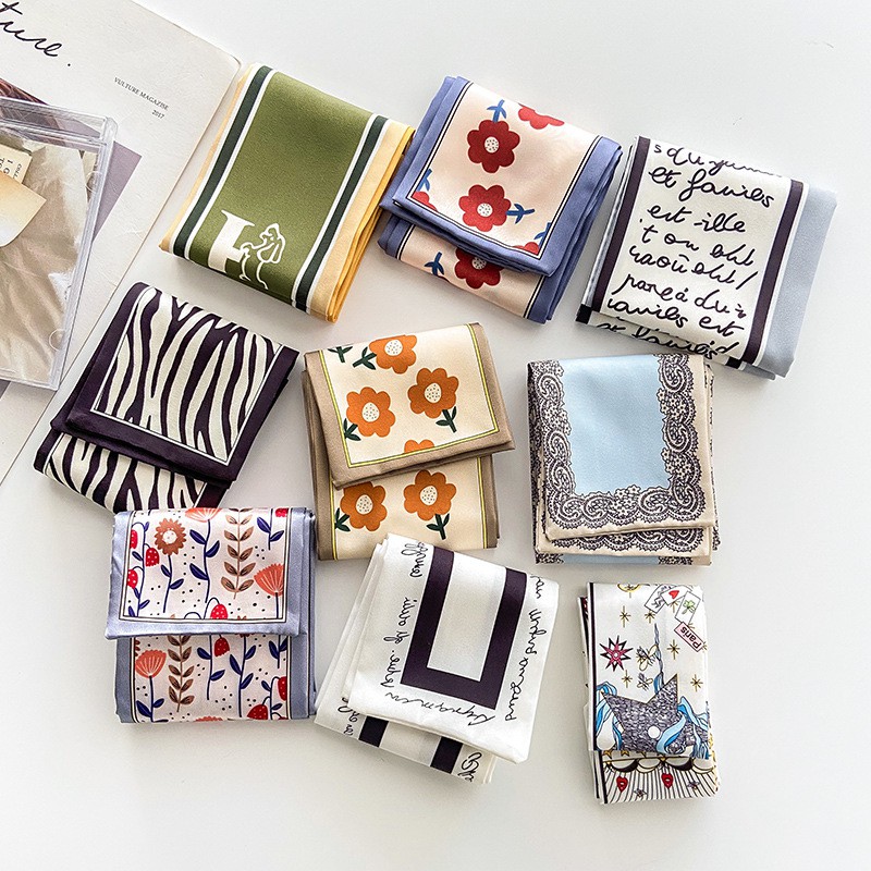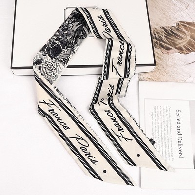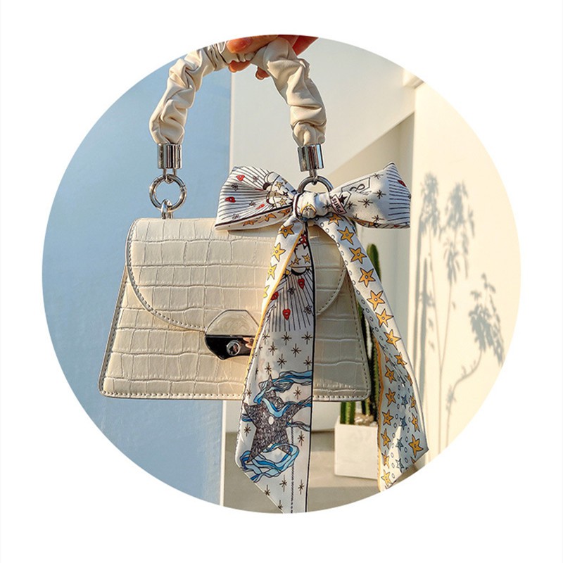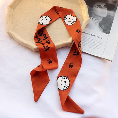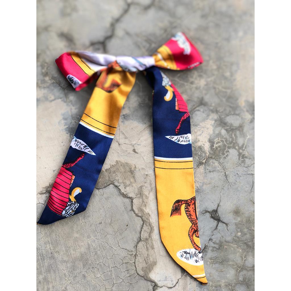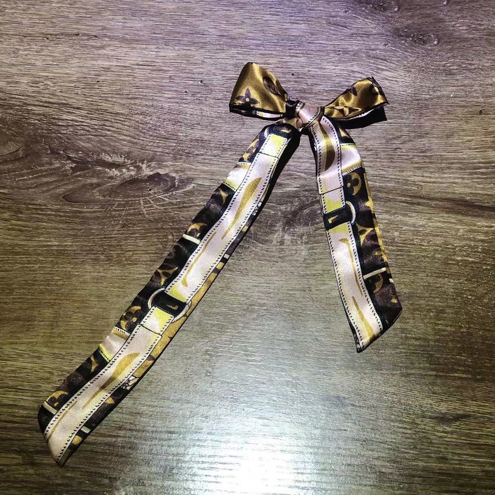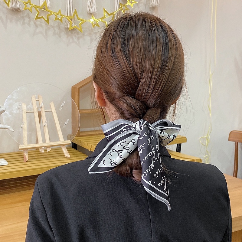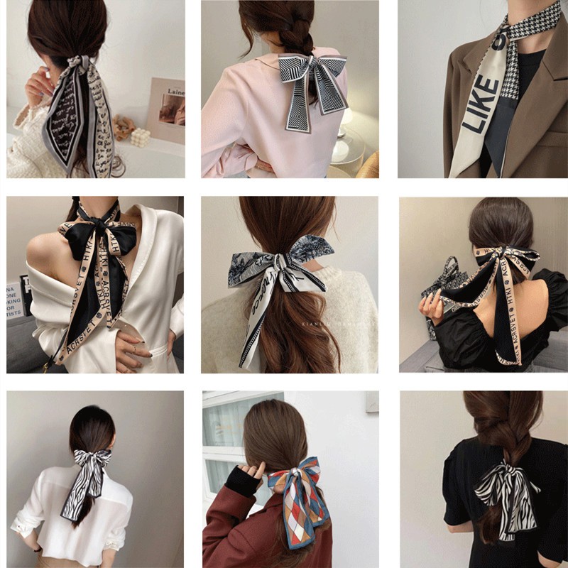 Aibins ที่คาดผม ผ้าพันคอ ผ้าไหม จี้โบว์ แฟชั่นเรโทร สําหรับผู้หญิง WJ1118