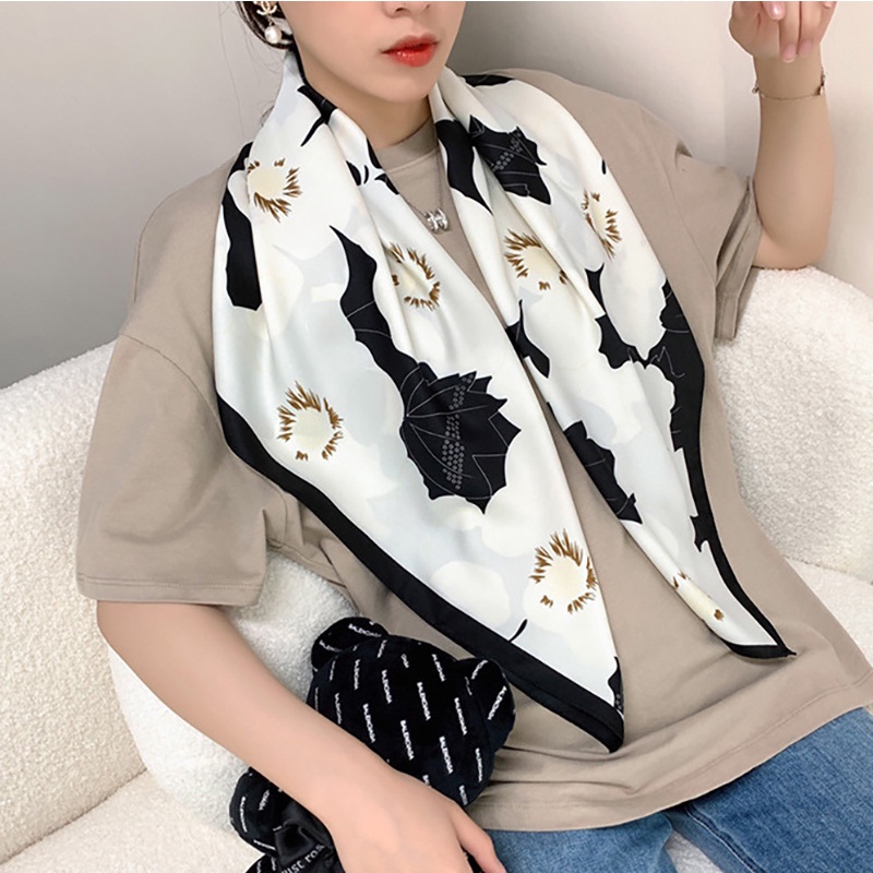 Aibins ผ้าโพกหัว ผ้าพันคอ ผ้าเรยอน กันแดด พิมพ์ลาย ทรงสี่เหลี่ยม ระบายอากาศ 35.4 นิ้ว 1 ชิ้น