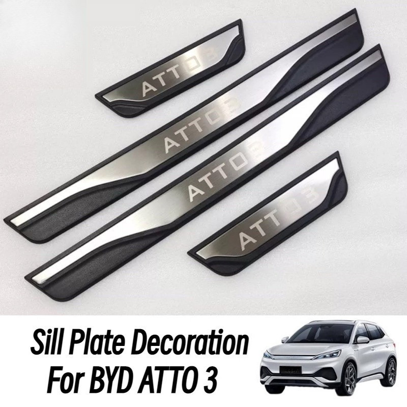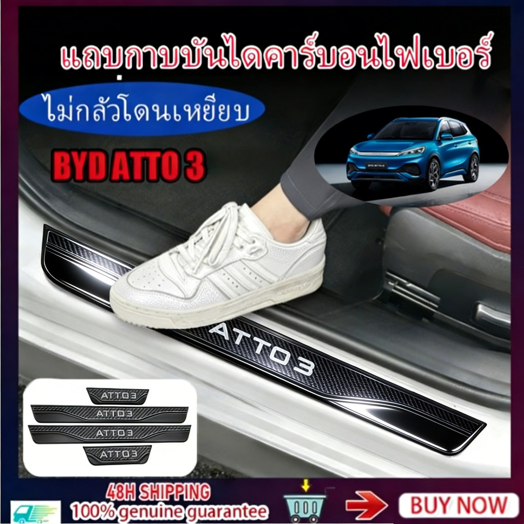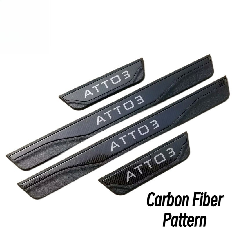 For BYD Atto 3 คาร์บอนประตูรถ Sill Scuff แผ่นยินดีต้อนรับเหยียบสแตนเลสสติกเกอร์ป้องกัน Abs อุปกรณ์ตกแต่งรถยนต์