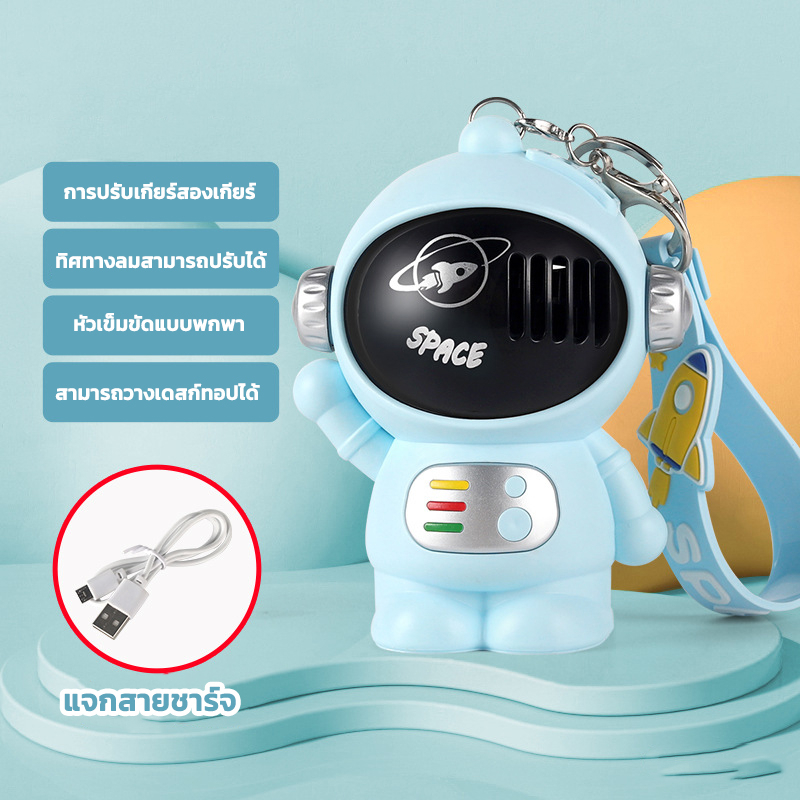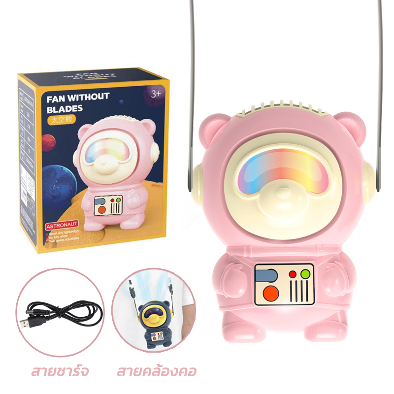 ลมอวกาศ พัดลมอิงฟ้า ชาร์จUSB พัดลมพกพา 360° หมุน พร้อมเชือกคล้องคอ ปรับระดับได้ พัดลมคล้องคอ