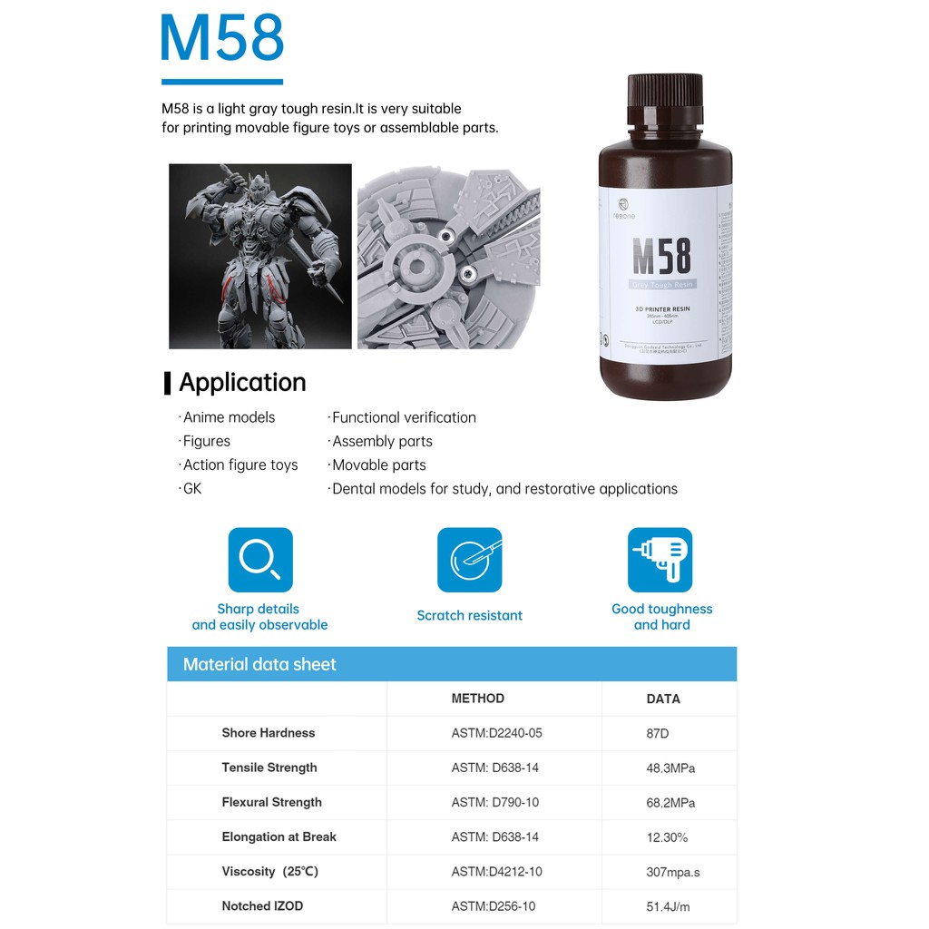 เรซิ่น พรีเมี่ยมยี่ห้อ Resione ชนิด Hard และ Tough รุ่น M58 สีเทาอ่อน1ลิตร