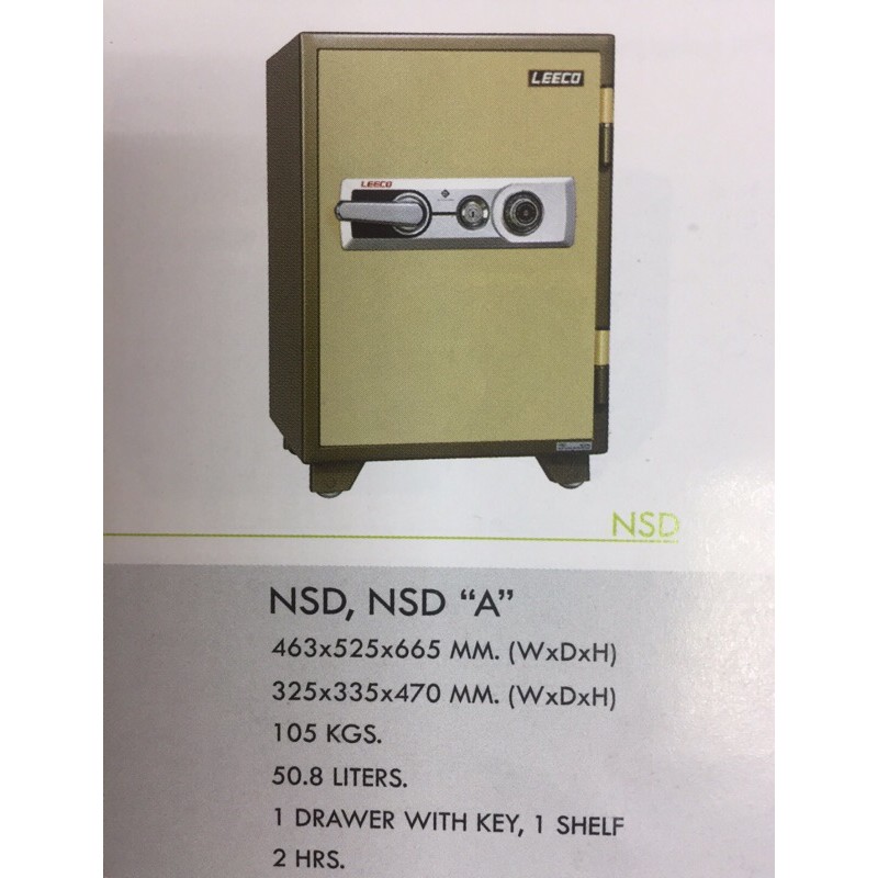 🔥ถูกที่สุด🔥ตู้เซฟนิรภัย Leeco กันไฟ ยี่ห้อ ลีโก้ รุ่น NSD หนัก 105กก. ขนาด 46.3x52.5x66cm กันไฟ60นาที รับประกัน1ปี