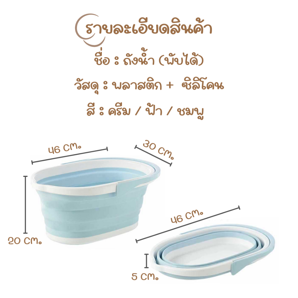 ถังน้ำ (พับได้) ถังน้ำอเนกประสงค์ กะละมังซักผ้า สำหรับทำความสะอาด พลาสติกพับได้