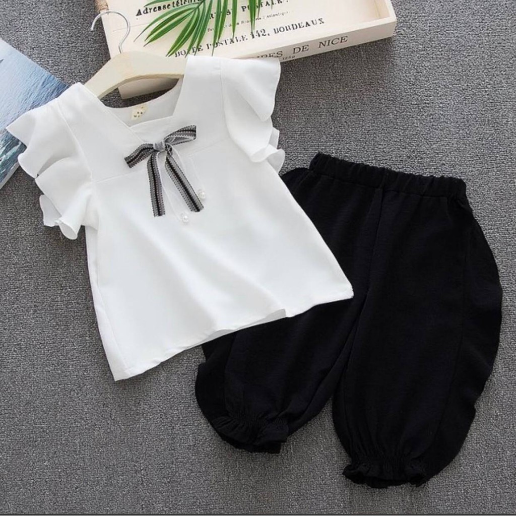 รุ่นนี้ขายดีมากค่ะ ชุดเซ็ต (เสื้อ+กางเกง) โบว์ตรงกลางน่ารักๆ