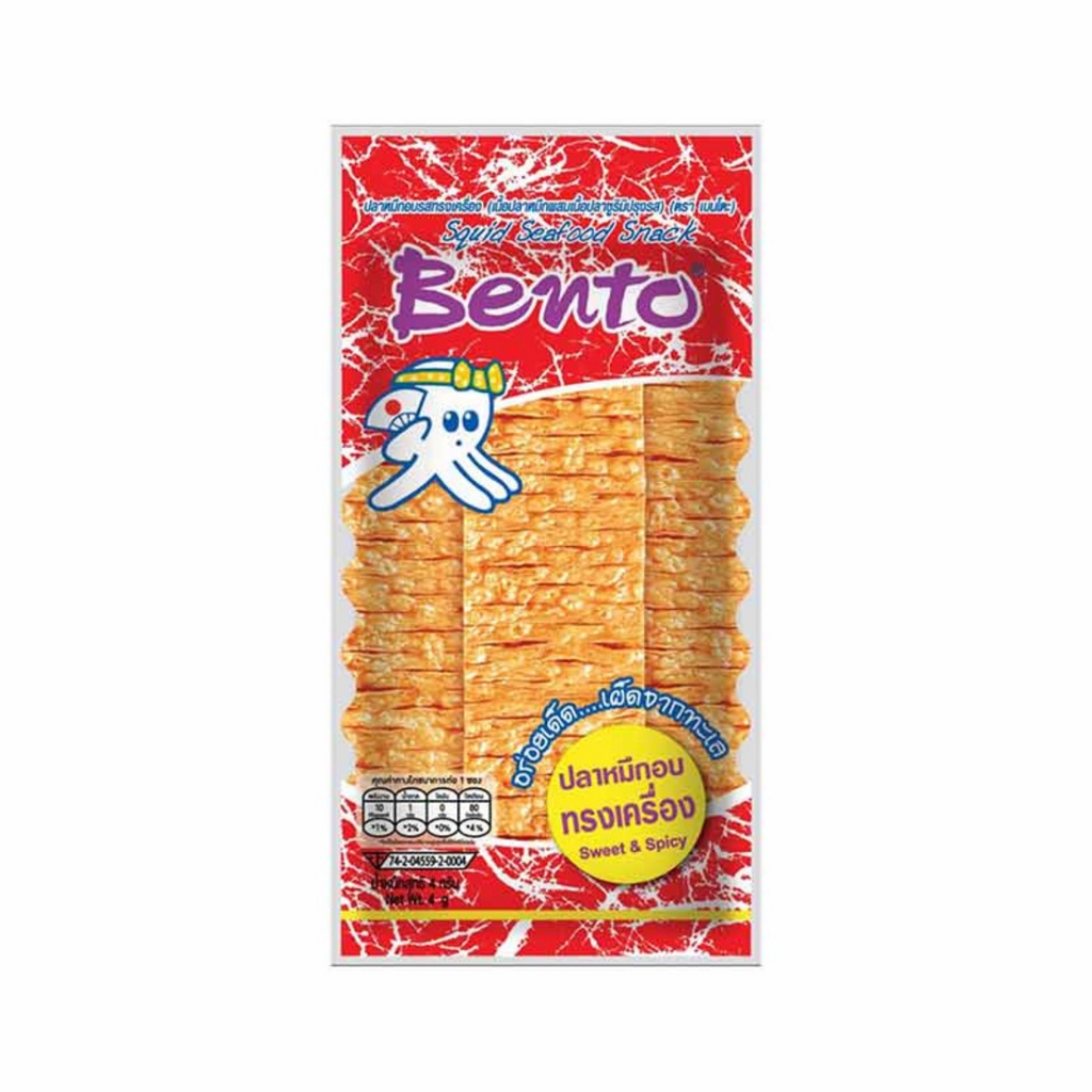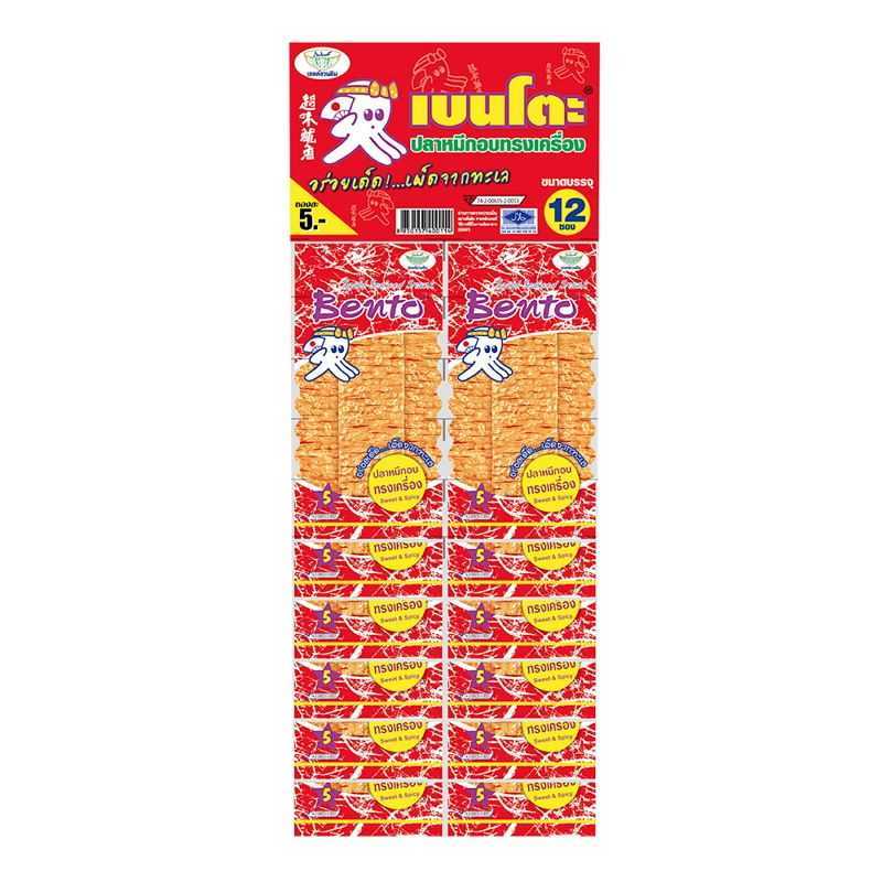 กินเพลิน✨5บาท [ยกแพ็ค] เบนโตะ ปลาหมึกอบกรอบทรงเครื่อง ขนาด 4 กรัม แพ็ค 12 ซอง