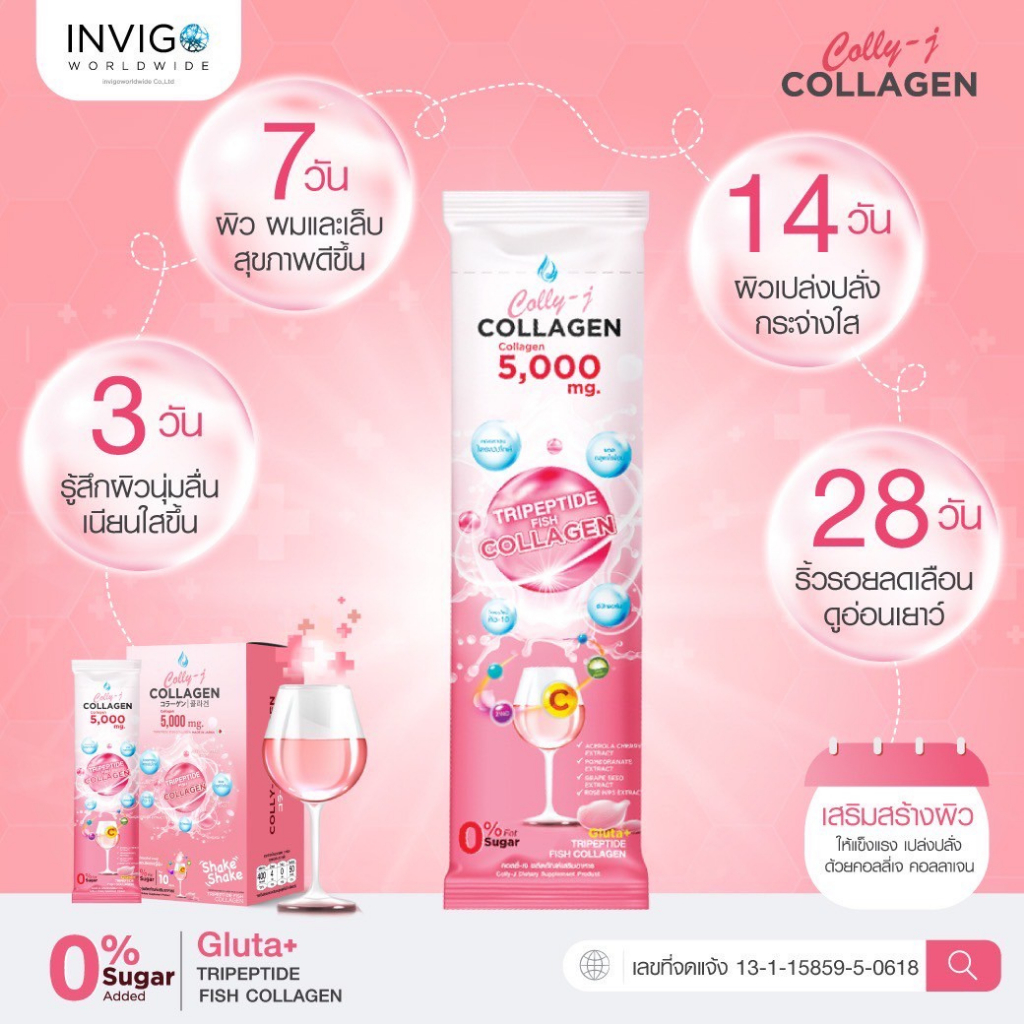 CollyJ Collagen คอลลี่เจ คอลลาเจน อาหารบำรุงผิวสวยใส ผม เล็บ ข้อเข่าแข็งแรง มี 10ซอง ส่งไว