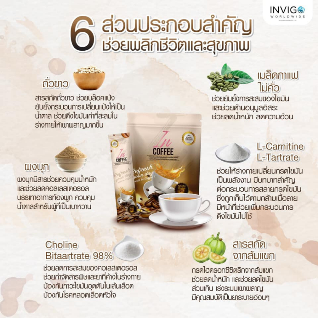 IN-Coffee อินคอฟฟี่ กาแฟผสมโกโก้แท้ เพื่อคนรักสุขภาพ 10 ซอง ชงง่าย รสละมุน พร้อมส่ง