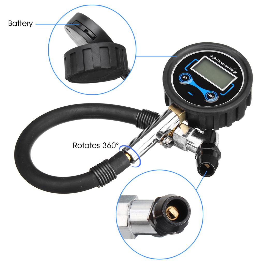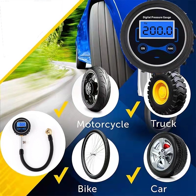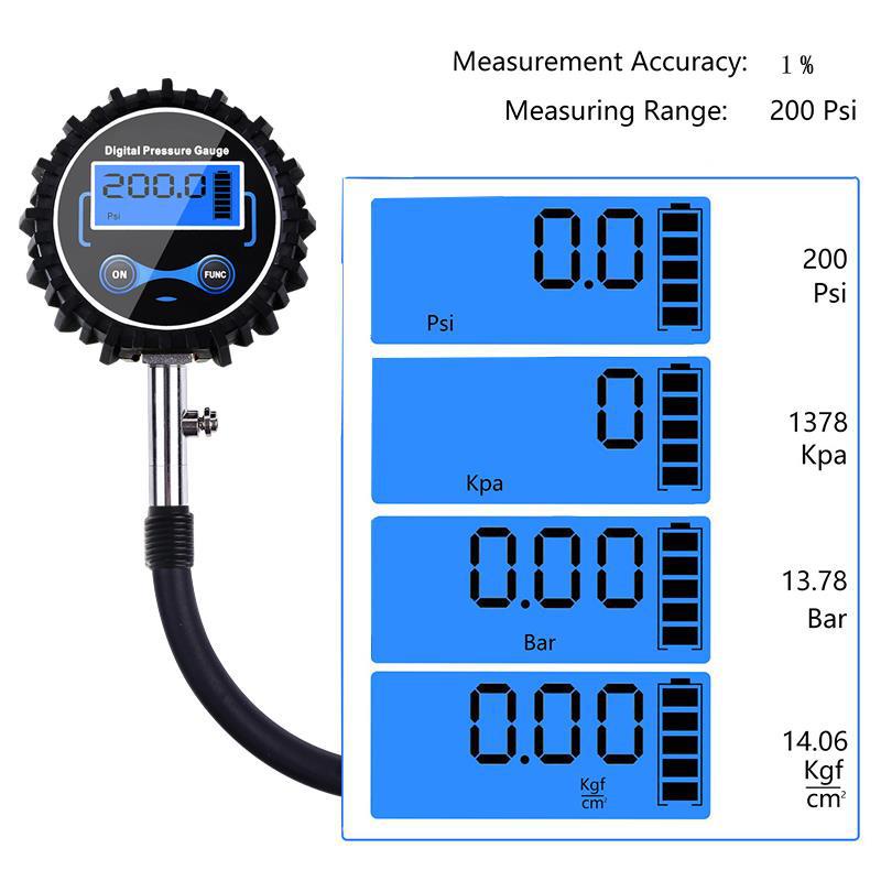 เกจวัดลมยาง ดิจิตอล อย่างดี ที่วัดลมยาง 0-200 PSI เกจ์วัดลมยาง เครื่องวัดลมยาง อเนกประสงค์ พร้อมแบตเตอรี่
