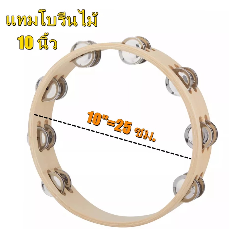 แทมมารีน ไม้ 10นิ้ว เคลือบกันน้ำ แทมบูรินไม้อย่างดี Tambourine แทมโบริน แทมโบรีนไม้ แทมบูรีน 10 นิ้ว