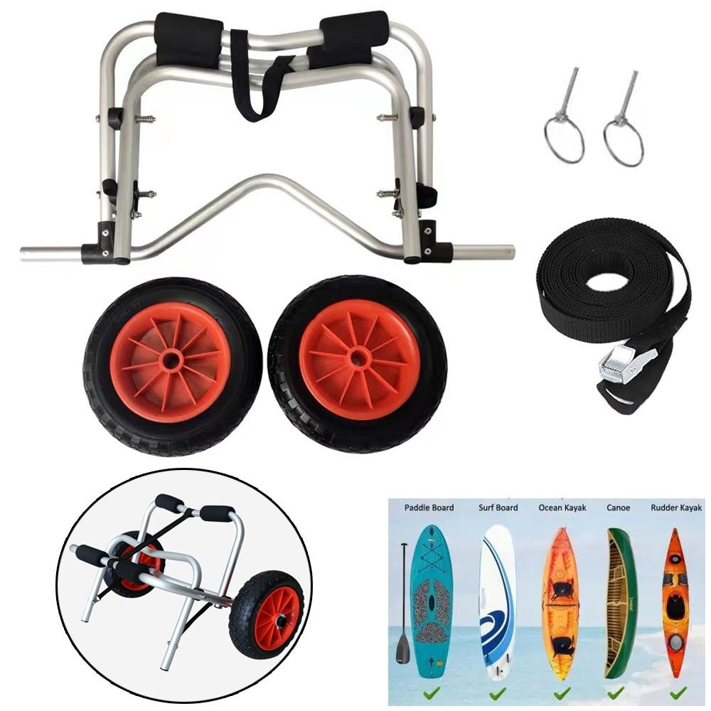 ล้อลากเรือคายัค 10" แบบพกพาน้ำหนักเบาพับได้เรือคายัคขนส่งเรือแคนูรถเข็นรถเข็นรถพ่วง
