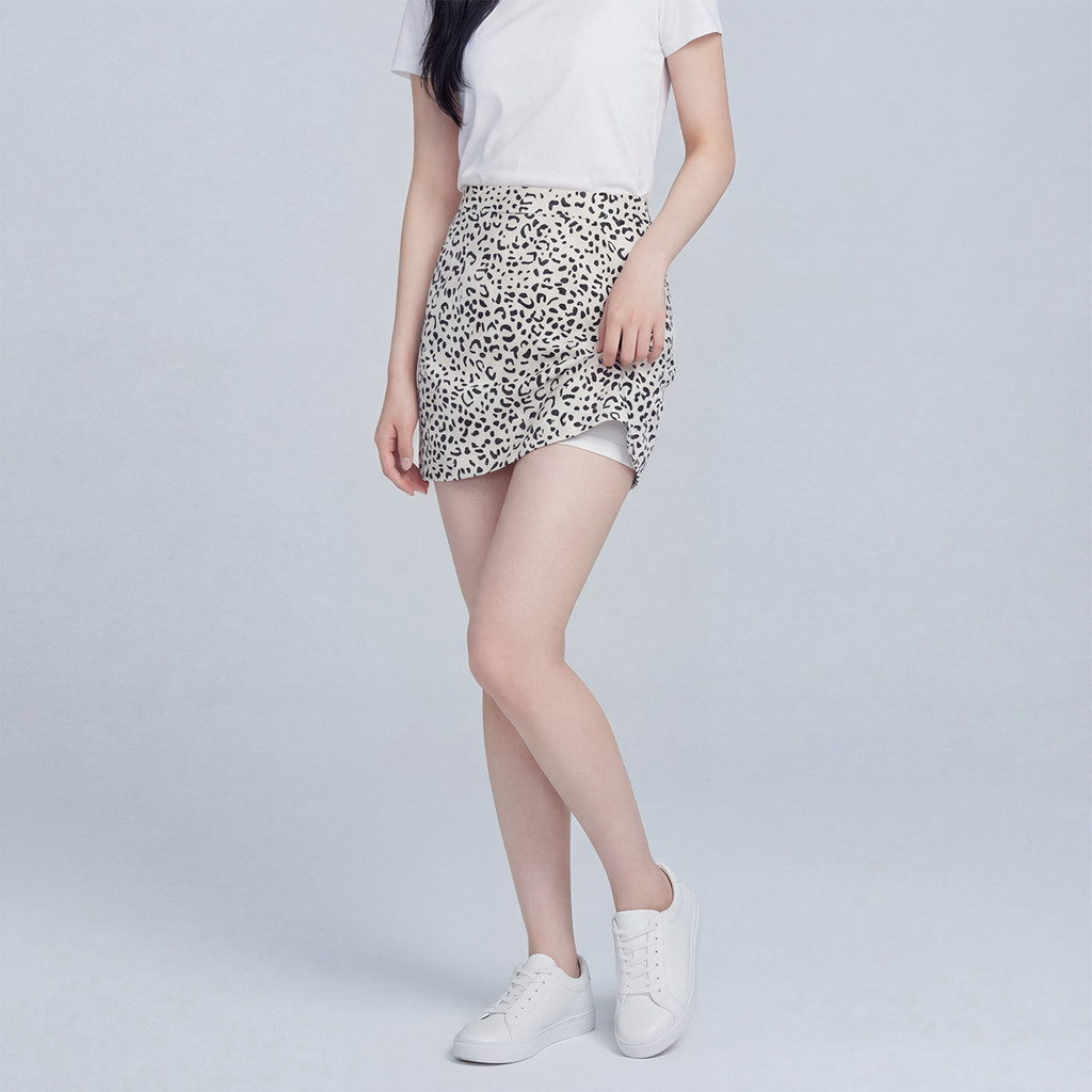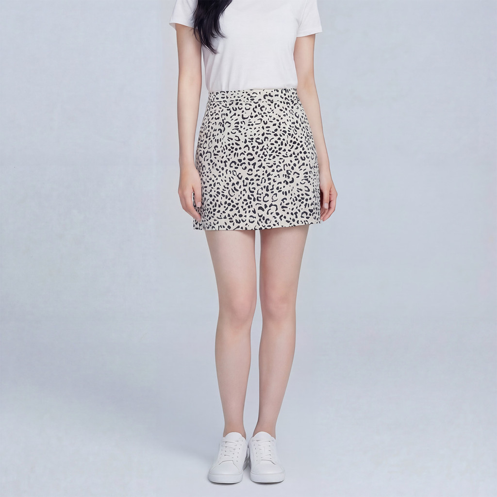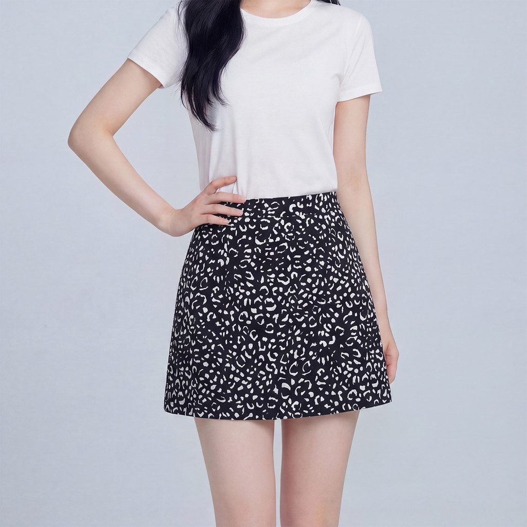 กระโปรงสั้นเอวสูง ทรงเอ ลายเสือดาว พิมพ์ลายชัด ทรงสวยเข้ารูป มีซับใน ซิปซ่อนหลัง