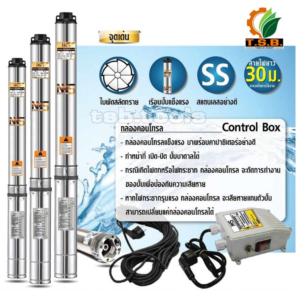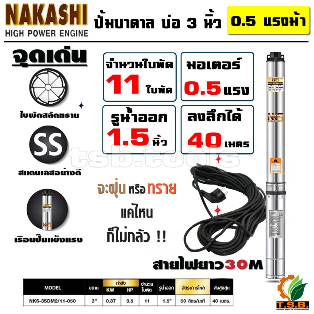 ยอดขายอันดับ 1 🥇NAKASHI (ซับเมอร์ส) ปั๊มบาดาล ใบพัดสลัดทราย บ่อ 3 นิ้ว บ่อ 4 นิ้ว ขนาดท่อ 1.5 นิ้ว ปั้มบาดาล AC 220V