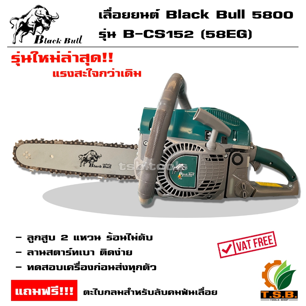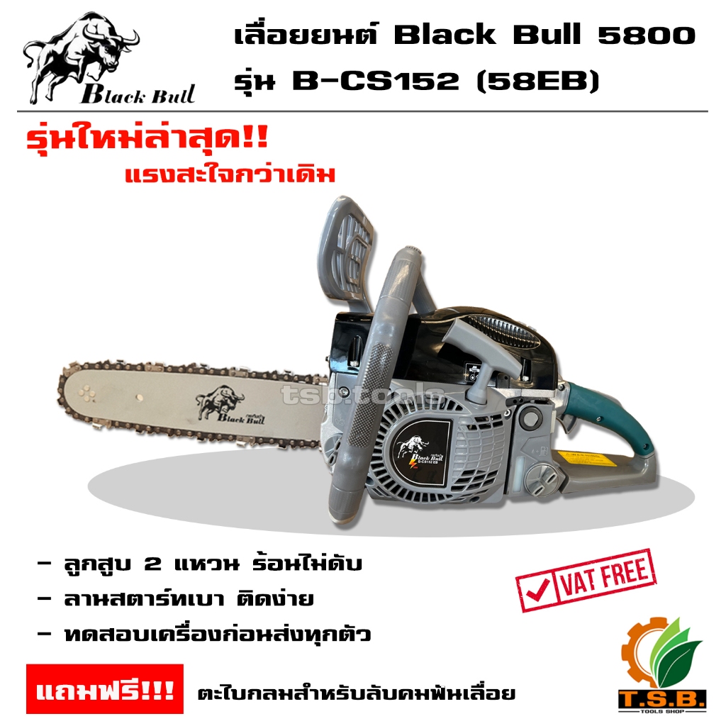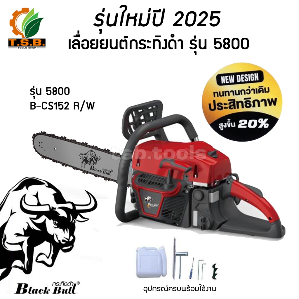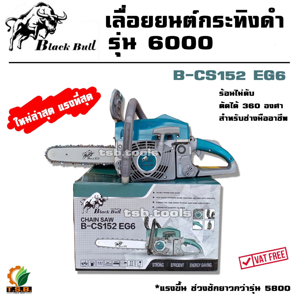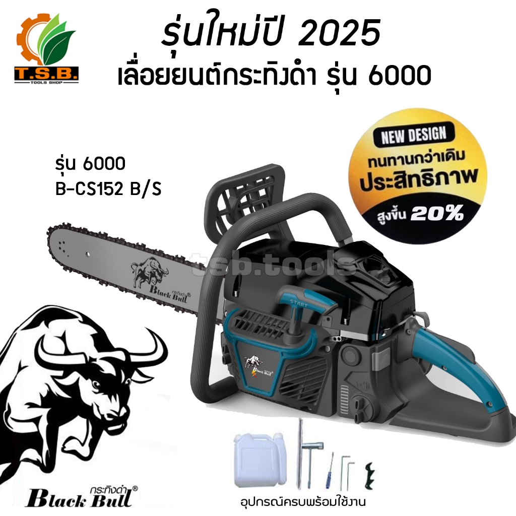 รุ่น 6000 รุ่นใหม่ล่าสุด เลื่อยยนต์ กระทิงดำ Black Bull (ลานสตาร์ตแบา) รุ่นงานหนัก มาตรฐานญี่ปุ่น รับประกันคุณภาพ (สีดำ)
