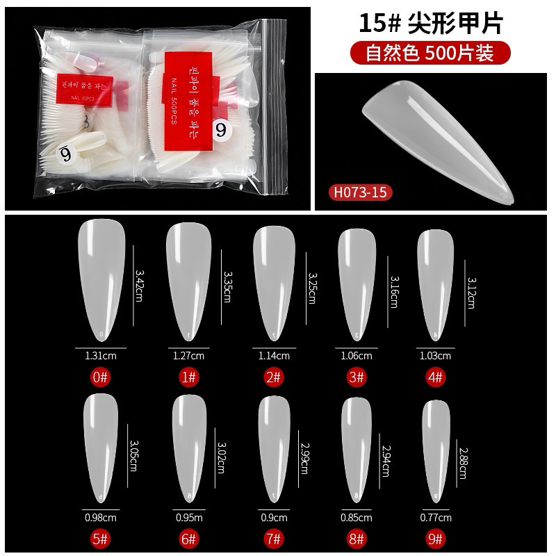 เล็บปลอม pvc รวมเบอร์500ชิ้น มีหลายทรง สั้นกุด ยาวกลาง คอฟฟิน ยาว บัลเล่