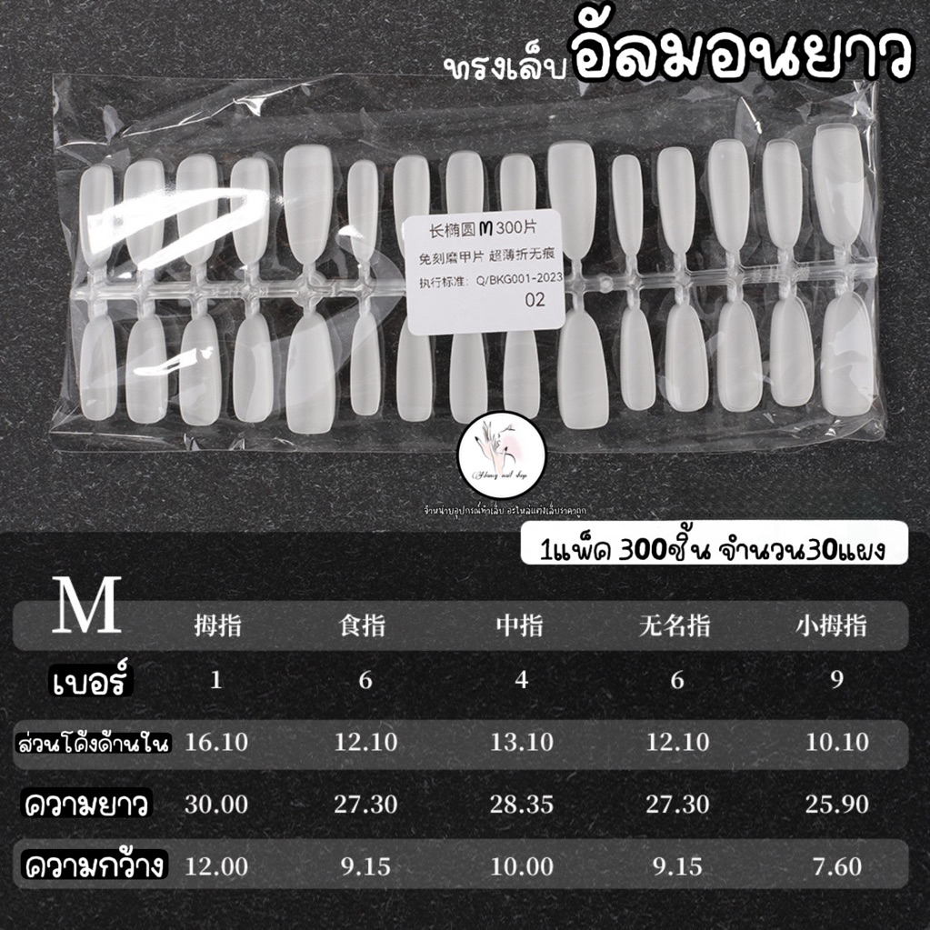 เล็บปลอมแบบแผง แยกเบอร์ มีหลายทรง PVC อัลมอน แหลมจิ๋ว บัลเล่ 1แพ็ค300ชิ้น (30แผง=30ชุด)