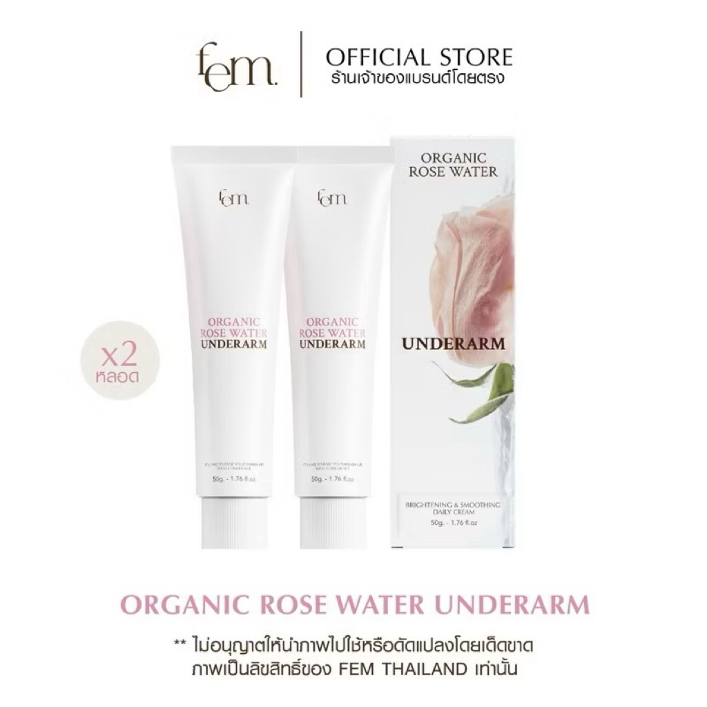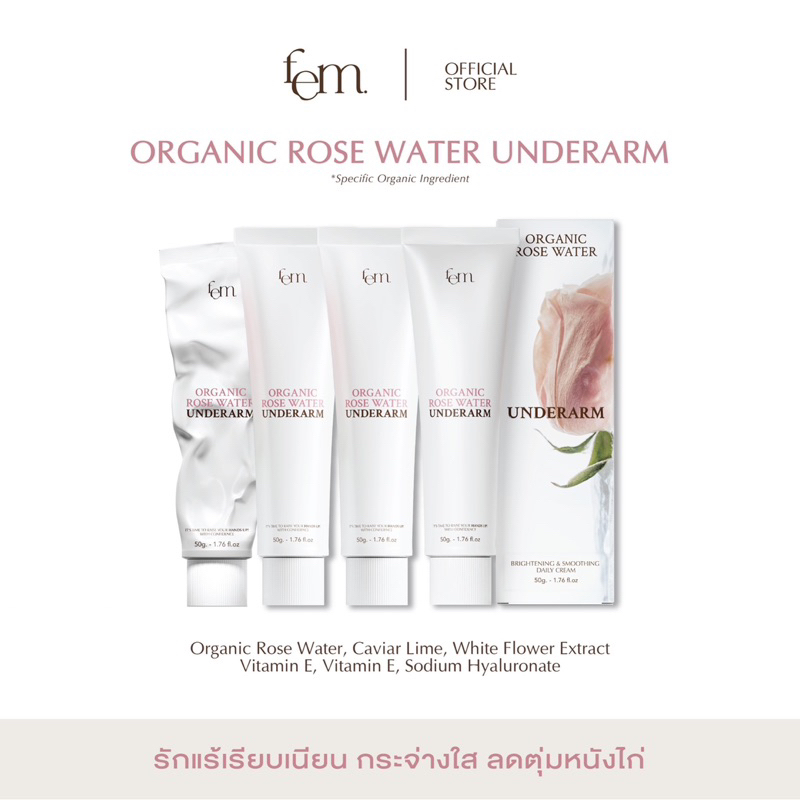 (มีส่งด่วน🚩) FEM : เฟ็ม Organic Rose Water Underarm 1 หลอด - ครีมทารักแร้ขาวใส ลดตุ่มหนังไก่