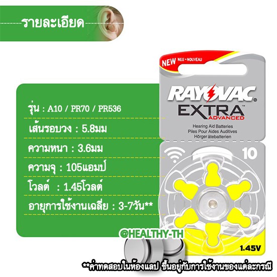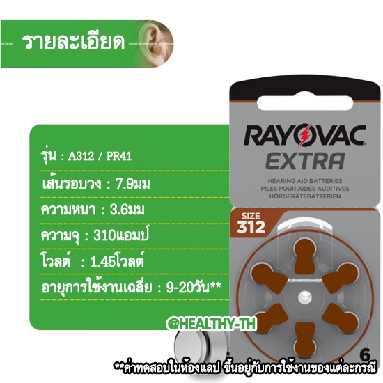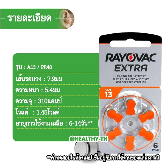 ถ่านเซลล์ A10 A13 A312 A675 ถ่านใส่หูฟัง เครื่องใช้ไฟฟ้า รีโมท นาฬิกา Raynovac ผลิตจากอังกฤษ แพ็ค 6 ก้อน