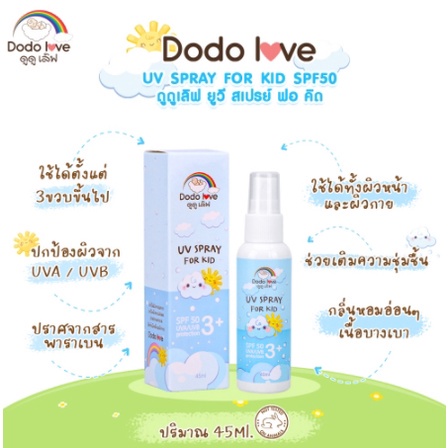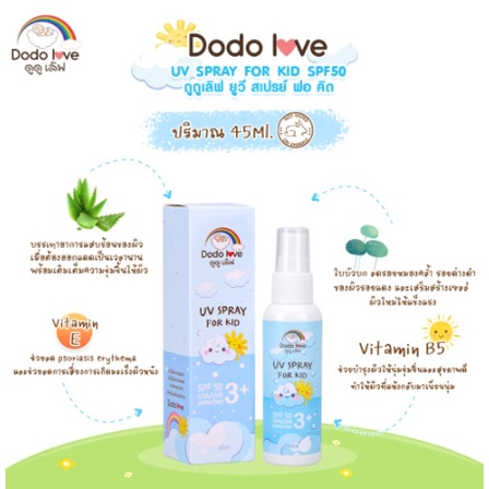 DODOLOVE สเปรย์กันแดด UV SPRAY FOR KID สำหรับเด็ก ปกป้องผิวจากรังสี UVA และ UVB SPF50 45 ml. ปราศจากพาราเบน สารกันบูด