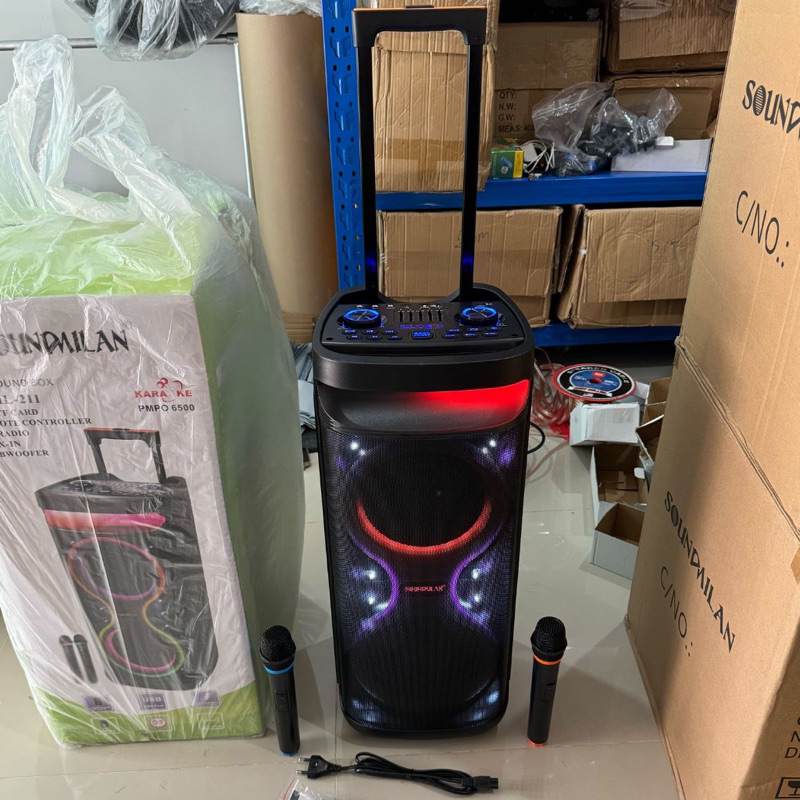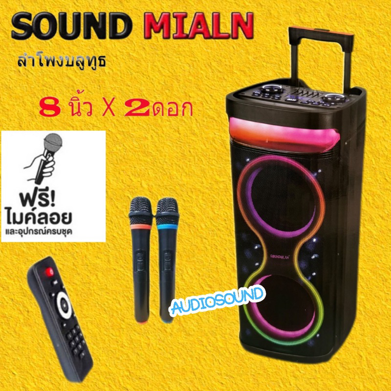 SOUNDMILAN ลำโพงบลูทูธ ML-211 8นิ้วดอกเบิ้ล ลำโพงล้อลาก เบสแน่น เสียงดี ไมค์ลอย2ตัว