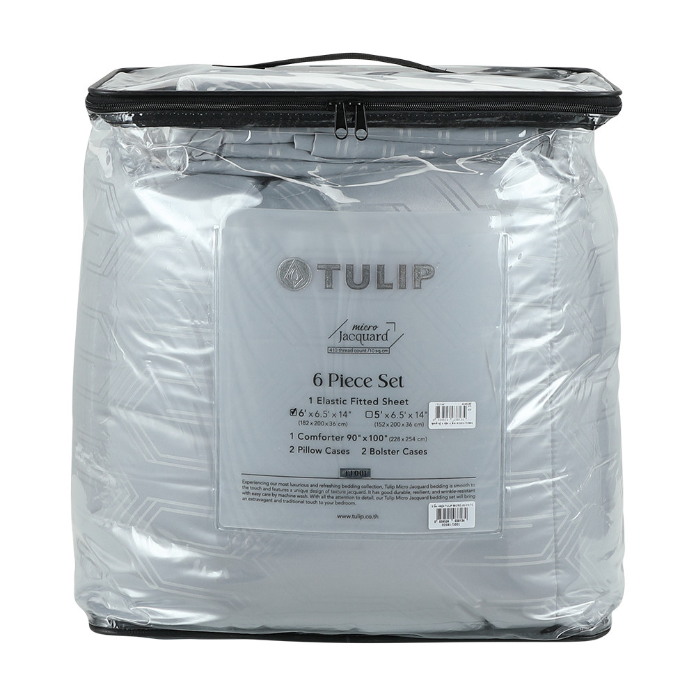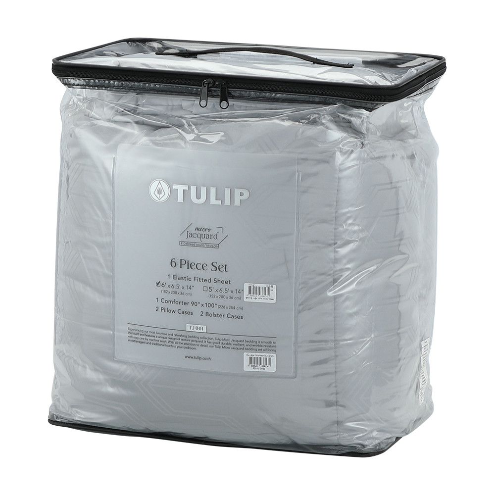 Furinbox ชุดผ้าปูที่นอน รุ่นทิวลิป ขนาด 6 ฟุต จำนวน (6 ชิ้น/ชุด) - สีเทา