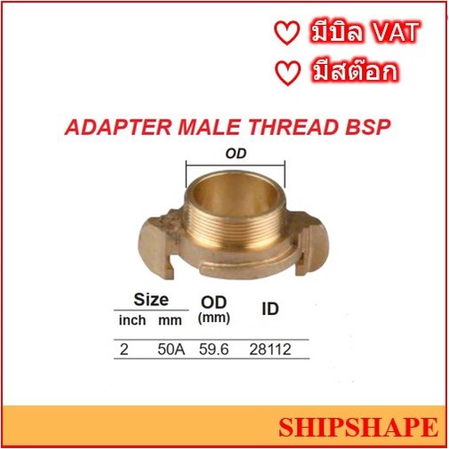 ข้อต่อดับเพลิง ทองเหลือง Nakajima นากาจิม่า ขนาด 50A (2") เกลียวนอก Adapter Male ออกใบกำกับภาษีได้ครับ
