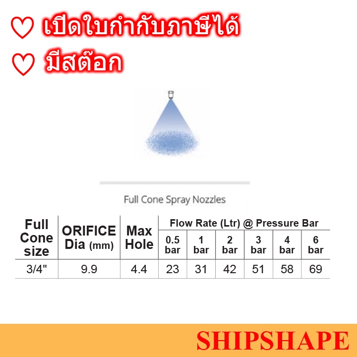 หัวสปริงเกอร์ Marine Sprinker Full Cone 90degree, เกลียวนอก 3/4" ออกใบกำกับภาษีได้ครับ