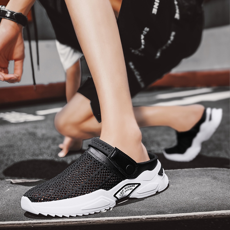 2024 ผู้ชายผู้หญิงฤดูร้อนรองเท้าแตะตาข่าย Mules Breathable เบาะ Beach Flip Flops รองเท้าแบนรองเท้าแตะอาบน้ําด้านนอกบุรุษรองเท้าแตะ