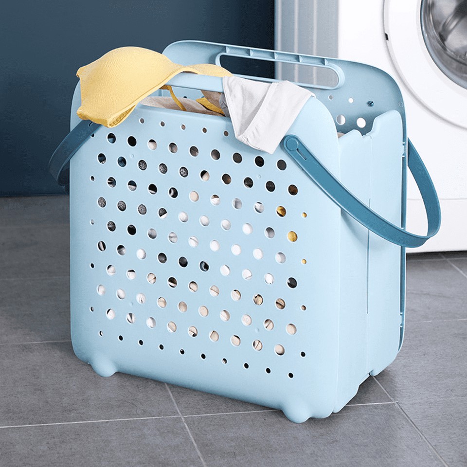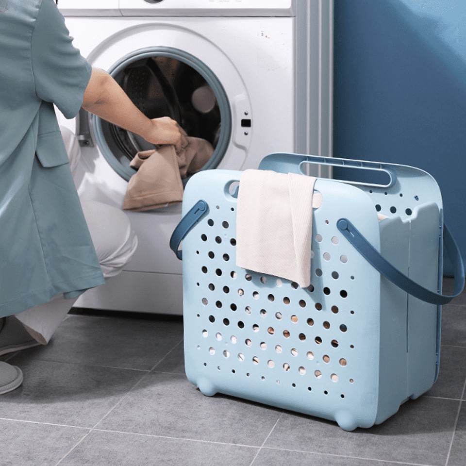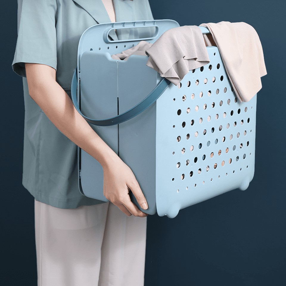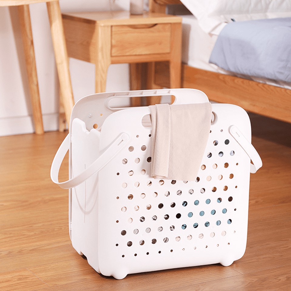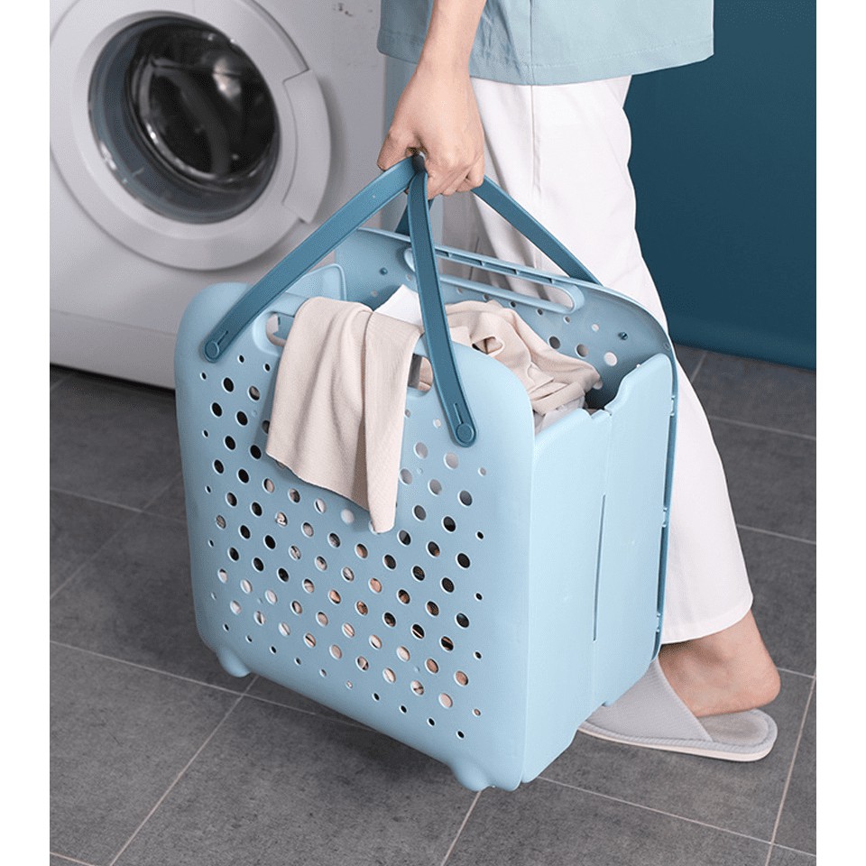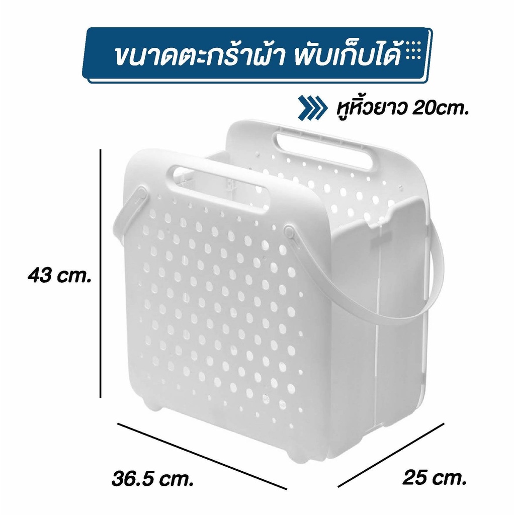 ตะกร้าเก็บผ้า ทรงสี่เหลี่ยมจตุรัส แบบพับเก็บได้ พลาสติกคุณภาพดี แข็งแรง ขนาด 41*43*27cm