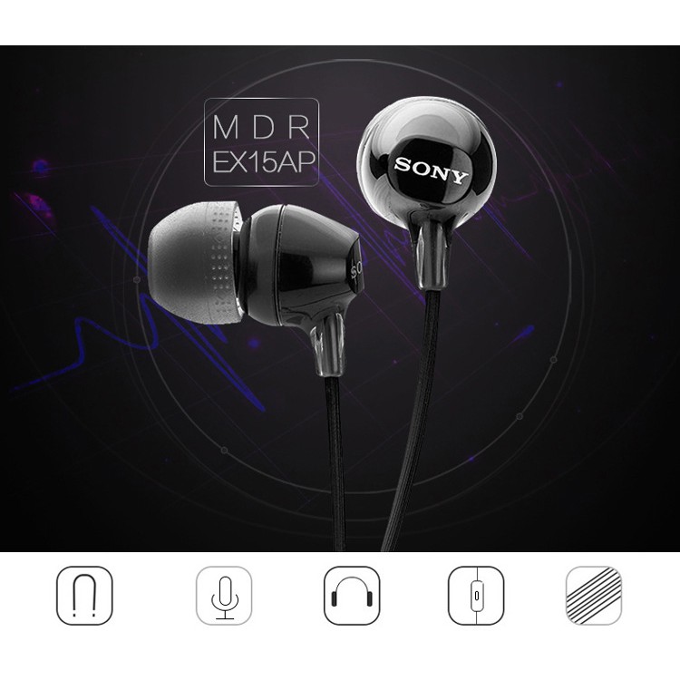Sony MDR-EX15AP หูฟังอินเอียร์ แบบมีสาย 3.5 มม. พร้อมซับวูฟเฟอร์สเตอริโอ แฮนด์ฟรี พร้อมไมโครโฟน