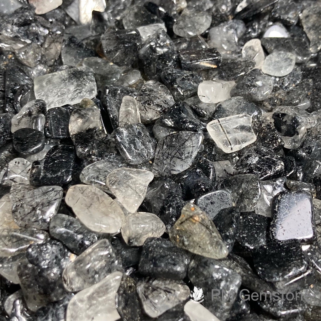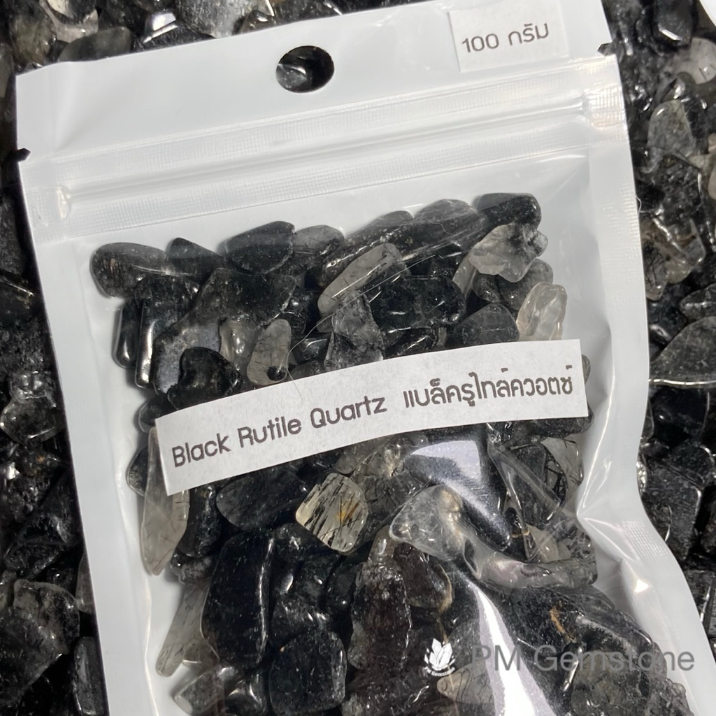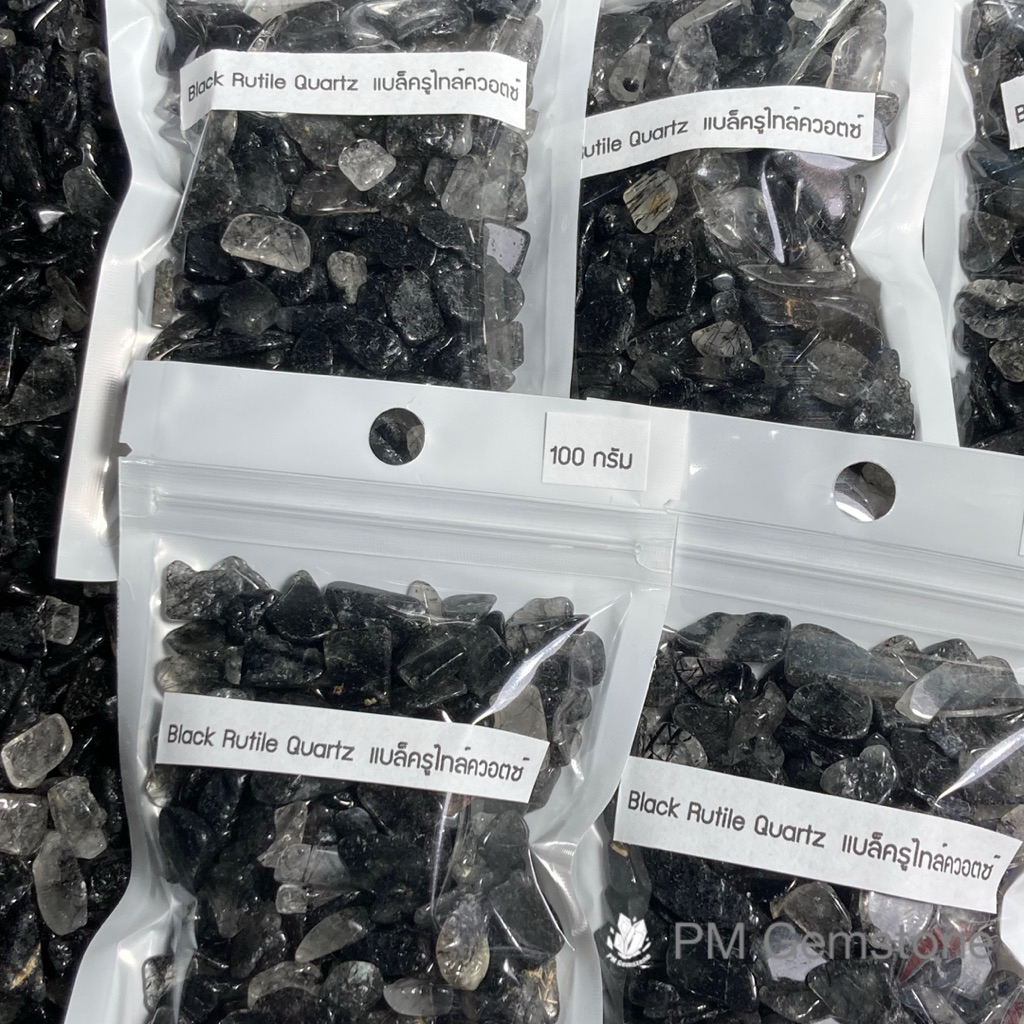 BR02 แบล็ครูไทล์ควอตซ์ ( Black Rutile Quartz ) ขนาด 5-8mm หินธรรมชาติ หินนำโชค หินแร่ หินคริสตัล หินสะสม งานอาร์ต