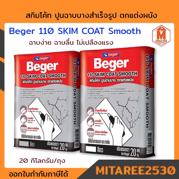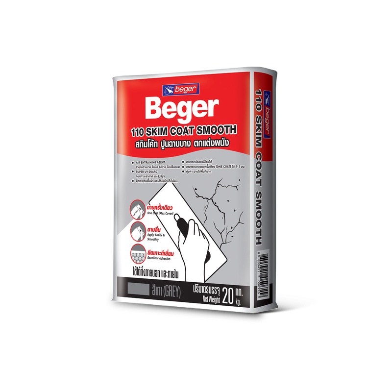 สกิมโค้ท ปูนฉาบบางสำเร็จรูป Beger 110 SKIM COAT Smooth สี สีขาว / สีเทา 20 กิโลกรัม