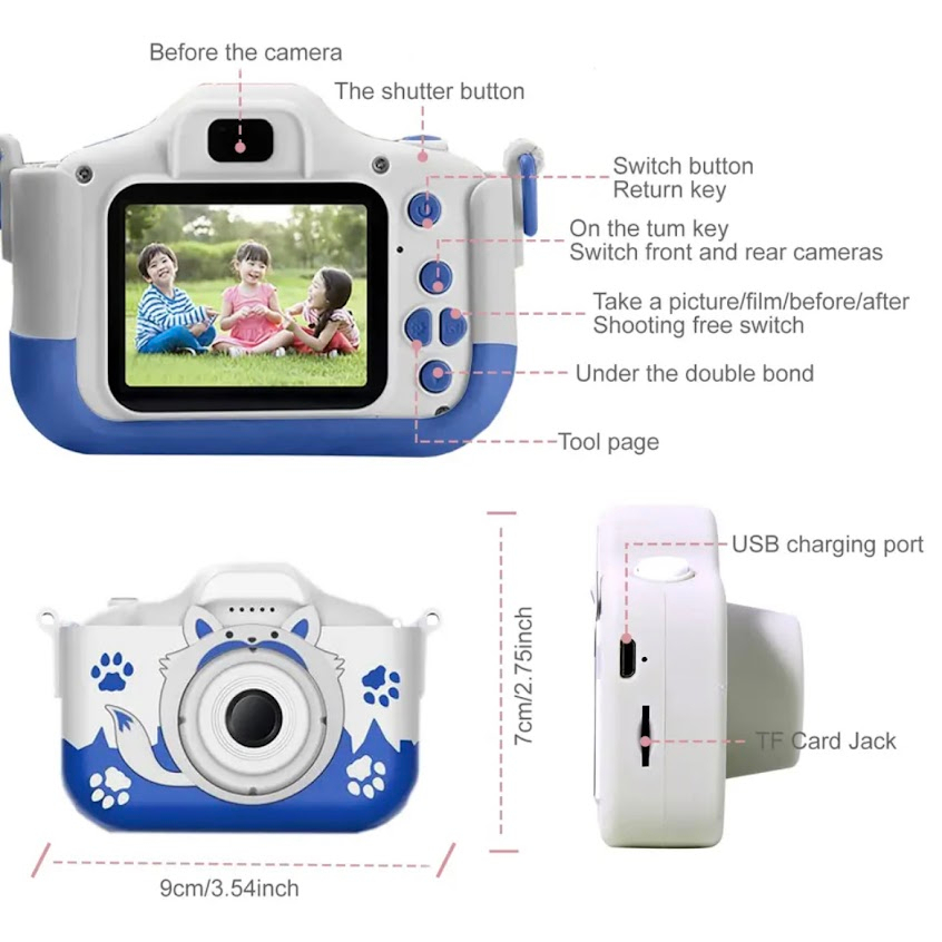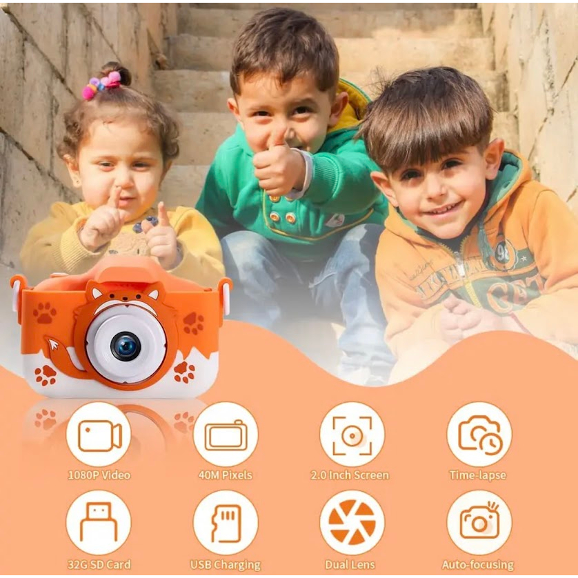 2024 เด็กกล้อง 40MP Dual เลนส์HD 2.0นิ้วกล้องวีดีโอการ์ตูนน่ารักกล้องถ่ายภาพกลางแจ้งของเล่น