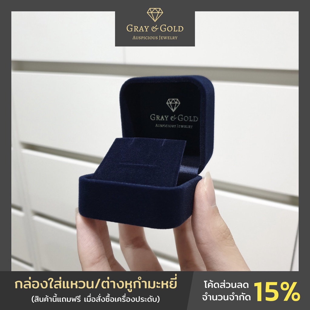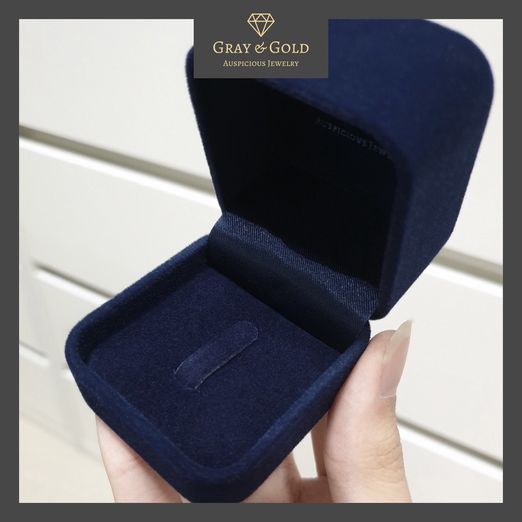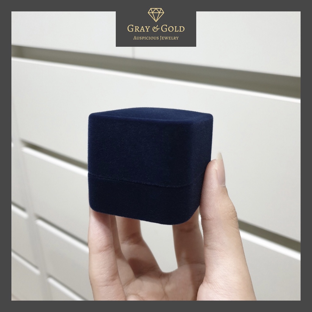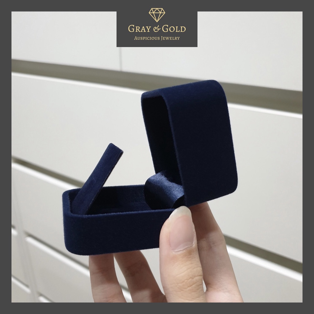 กล่องใส่แหวน/ต่างหู กำมะหยี่ สรีนแบรนด์ Gray & Gold สีกรมท่า Jewelry Velvet Box [GG005]