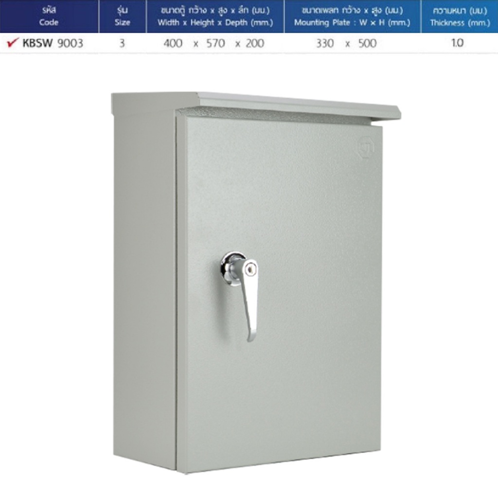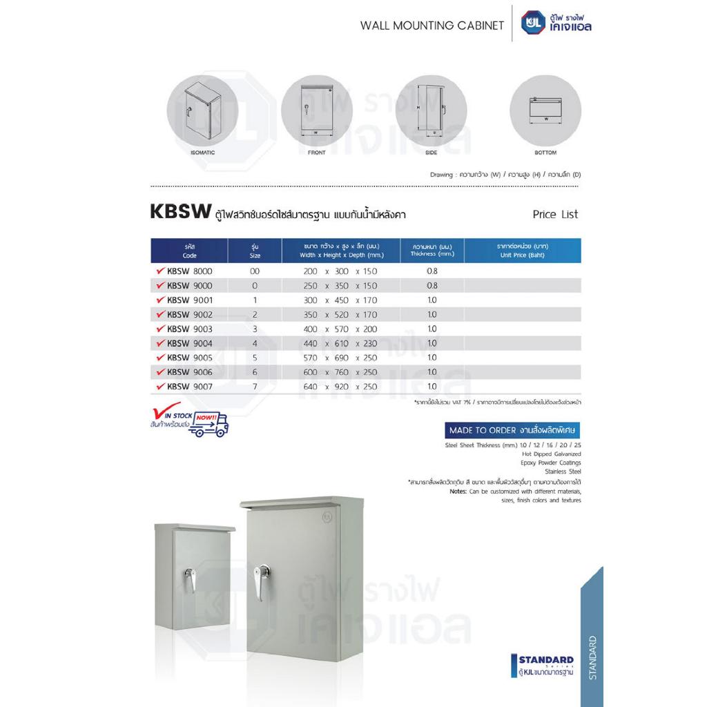 KJL ตู้เหล็กกันน้ำ ตู้ไฟ กันน้ำ เบอร์ 00, 0, 1, 2, 3, 4 รุ่น KBSW