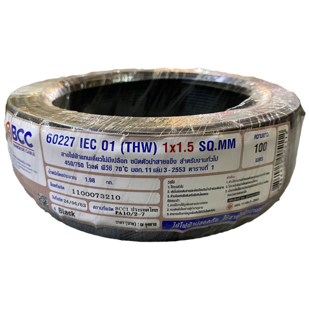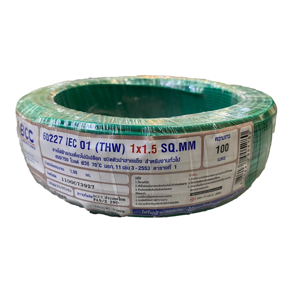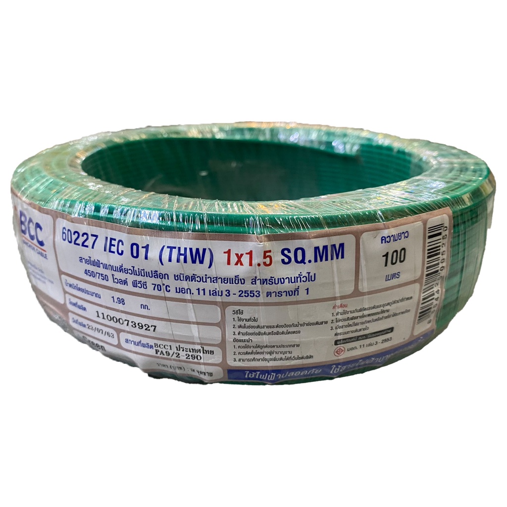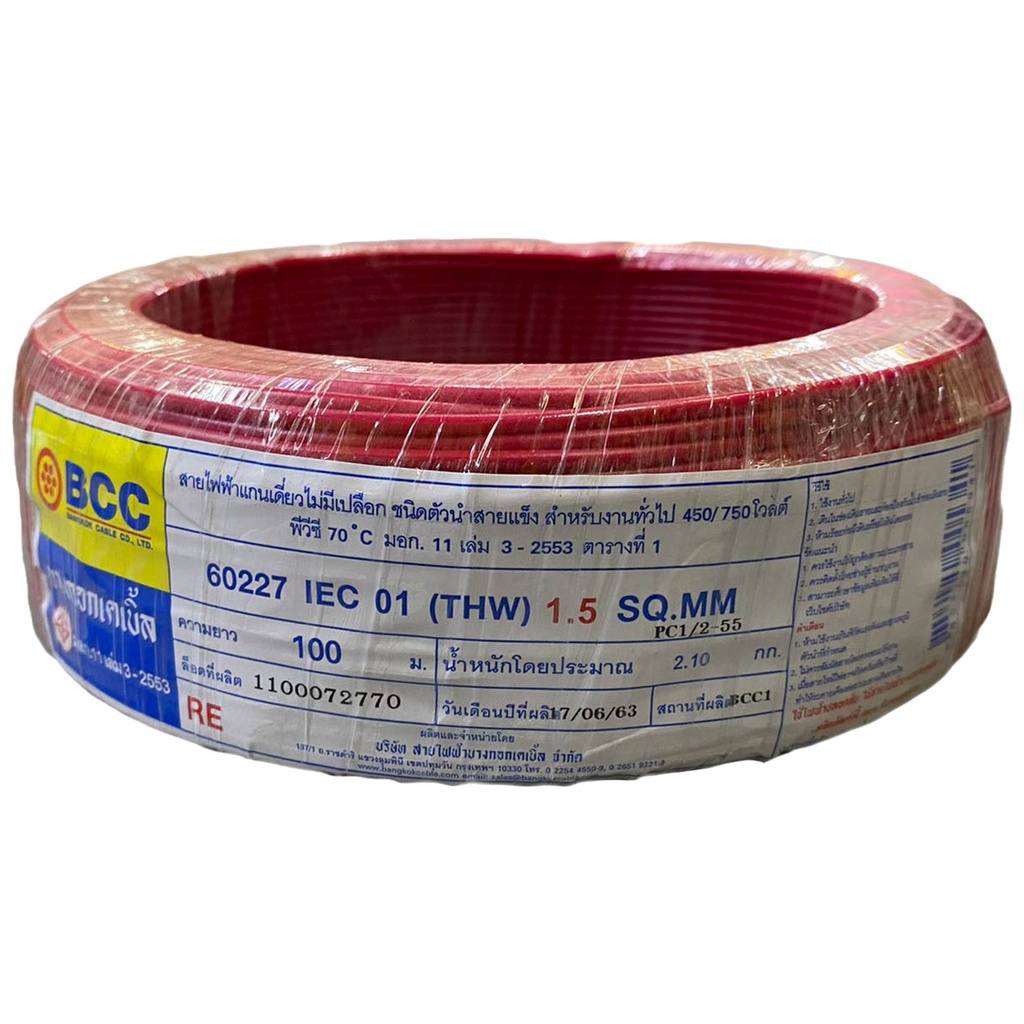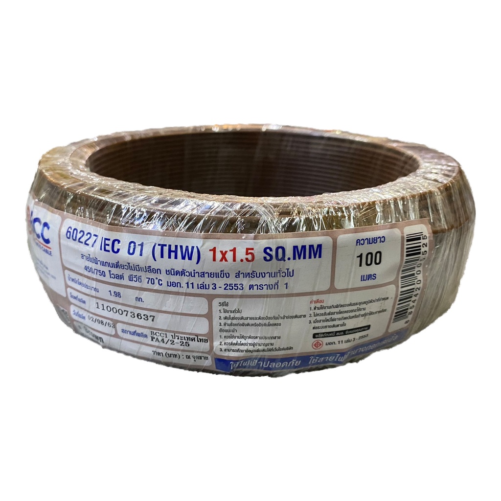BCC สายไฟทองแดง THW 1x1.5 sq.mm (ม้วน 100 เมตร)
