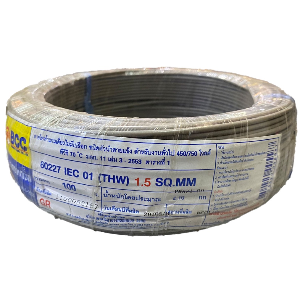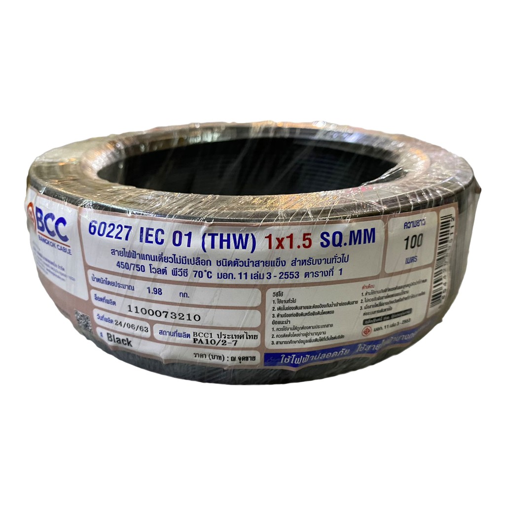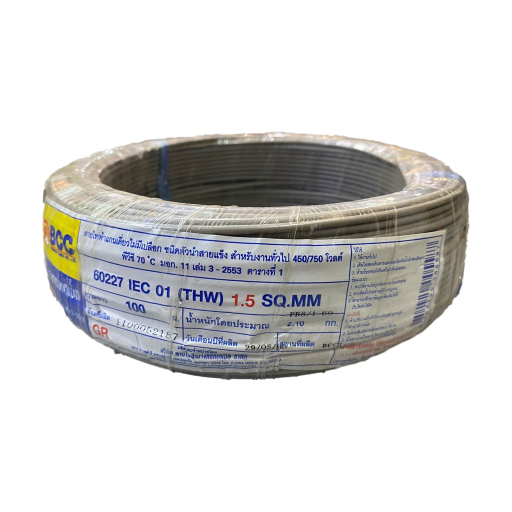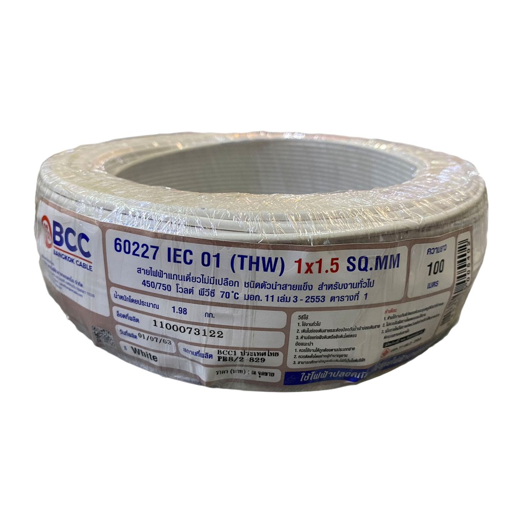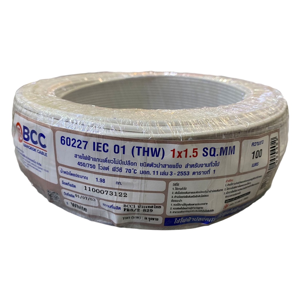 BCC สายไฟทองแดง THW 1x1.5 sq.mm (ม้วน 100 เมตร)