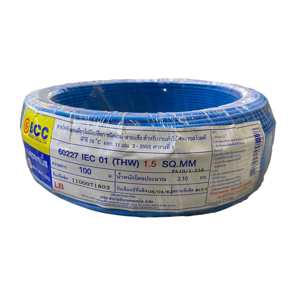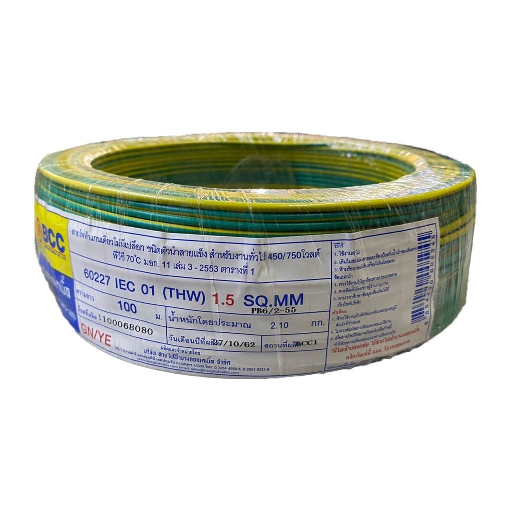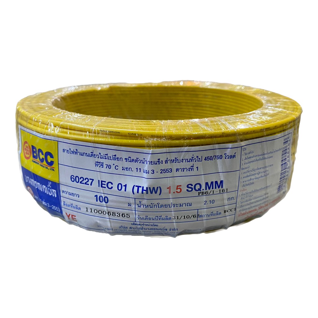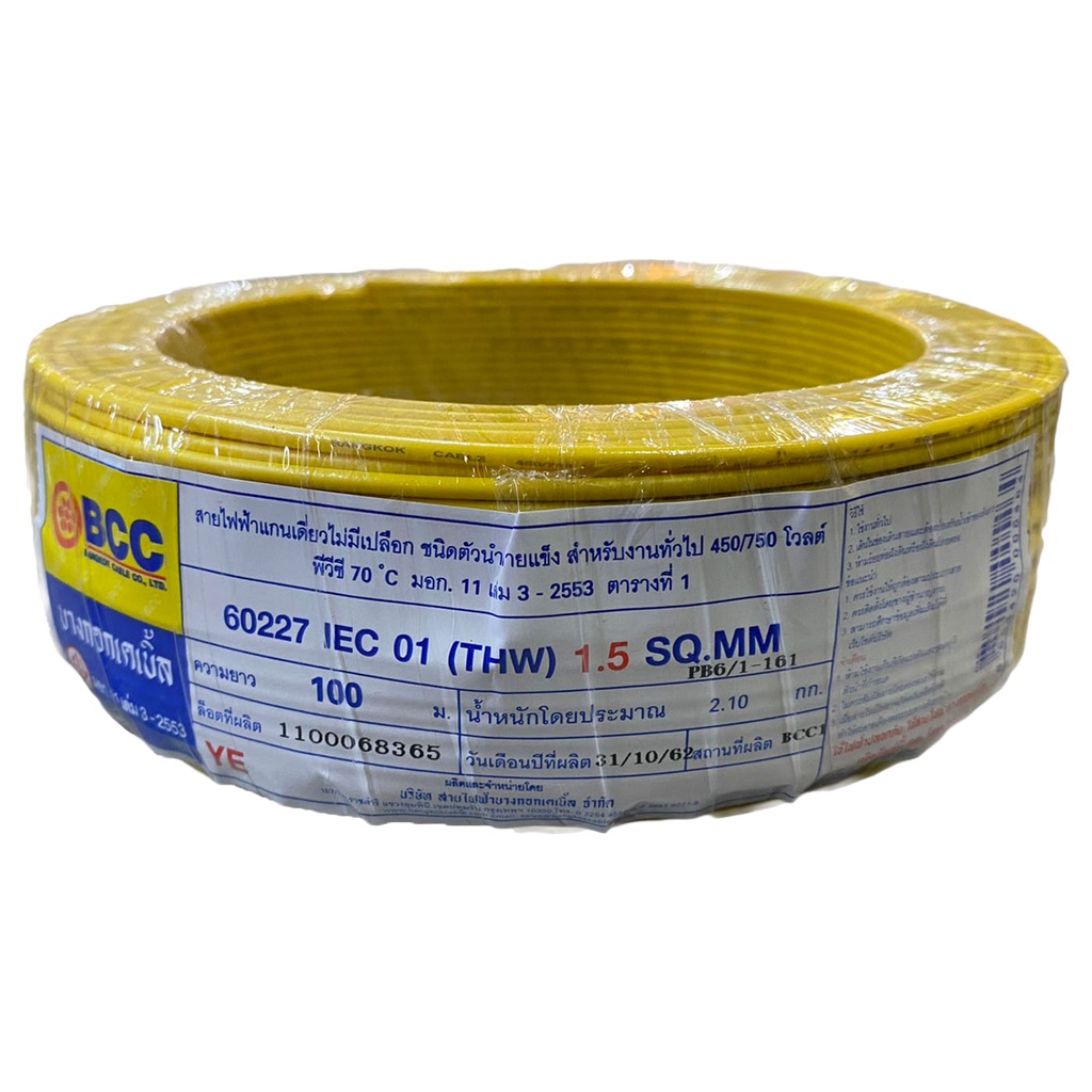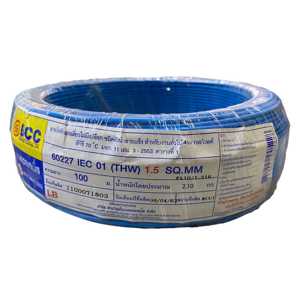 BCC สายไฟทองแดง THW 1x1.5 sq.mm (ม้วน 100 เมตร)