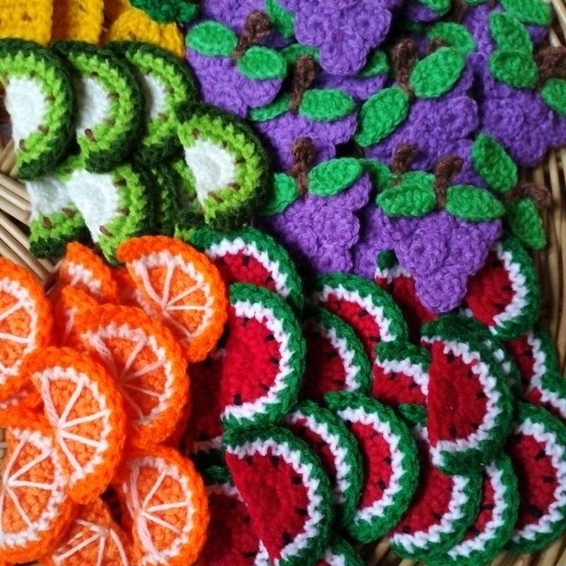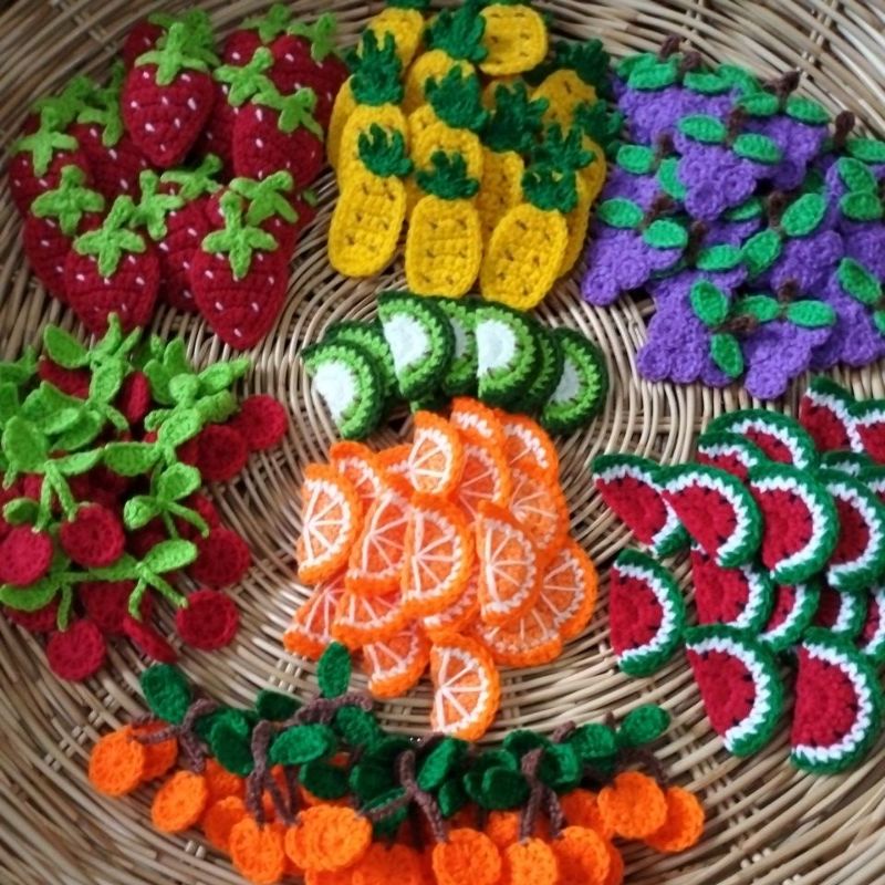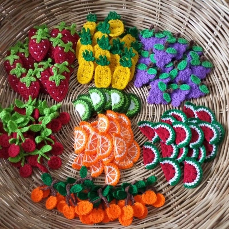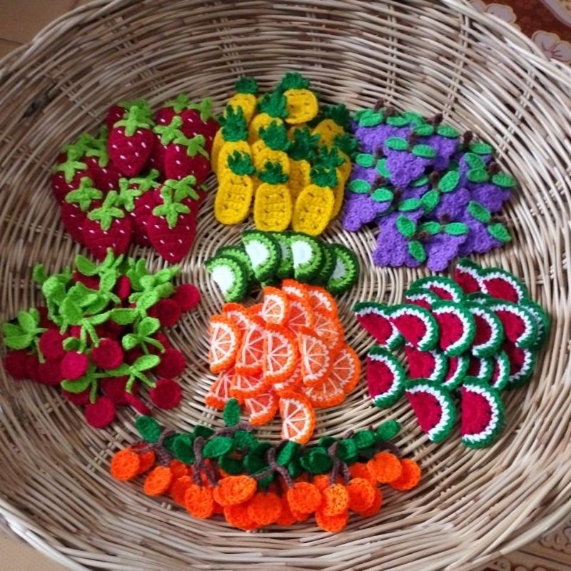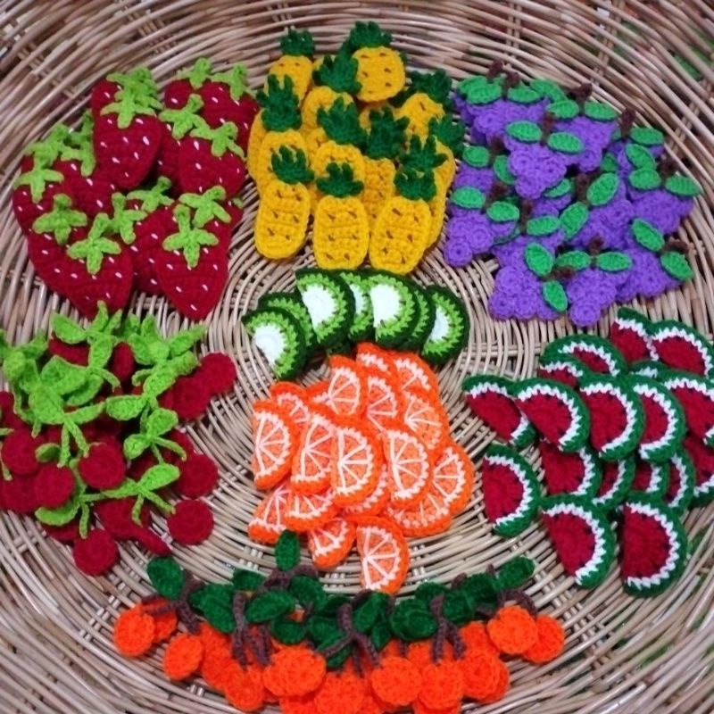 พร้อมส่ง ผลไม้ ถัก ตกแต่งกระเป๋าสาน กระจูดหรือ ชิ้นงานต่างๆ