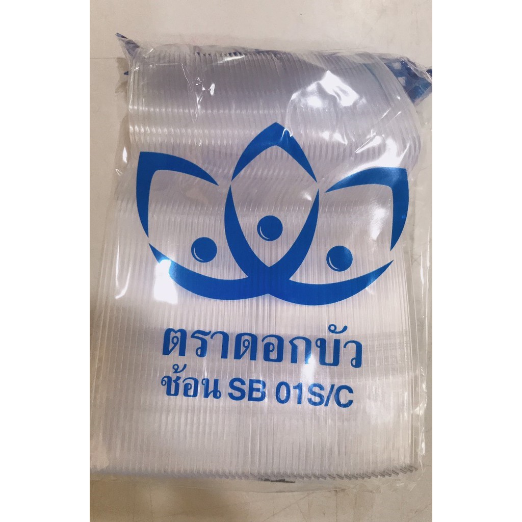 ช้อนพลาสติกใหญ่ ส้อมพลาสติกใหญ่ สีขาว สีใส 100 คัน (ตราดอกบัว)