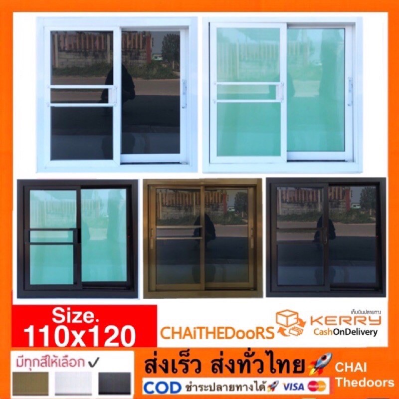 พร้อมส่ง,กดออเดอร์ละ1ชิ้น❤️สูง110xกว้าง120 พร้อมส่ง หน้าต่าง บานเลื่อน สีขาว สีชา สีดำ