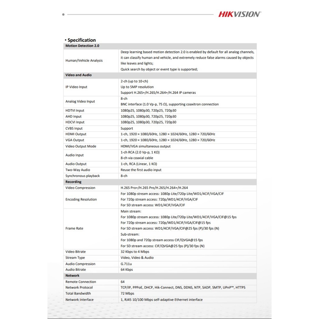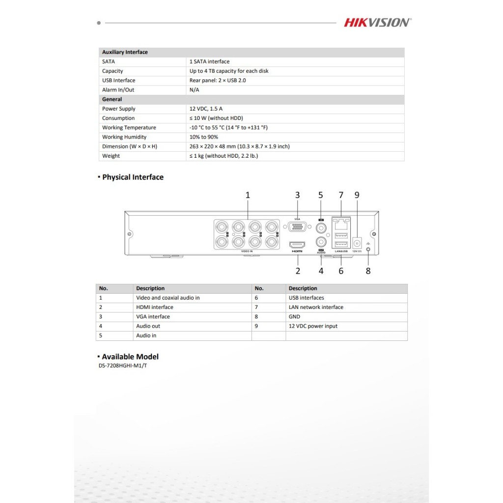 เครื่องบันทึกกล้องวงจรปิด Hikvision DS-7208HGHI-M1/T 8ช่อง