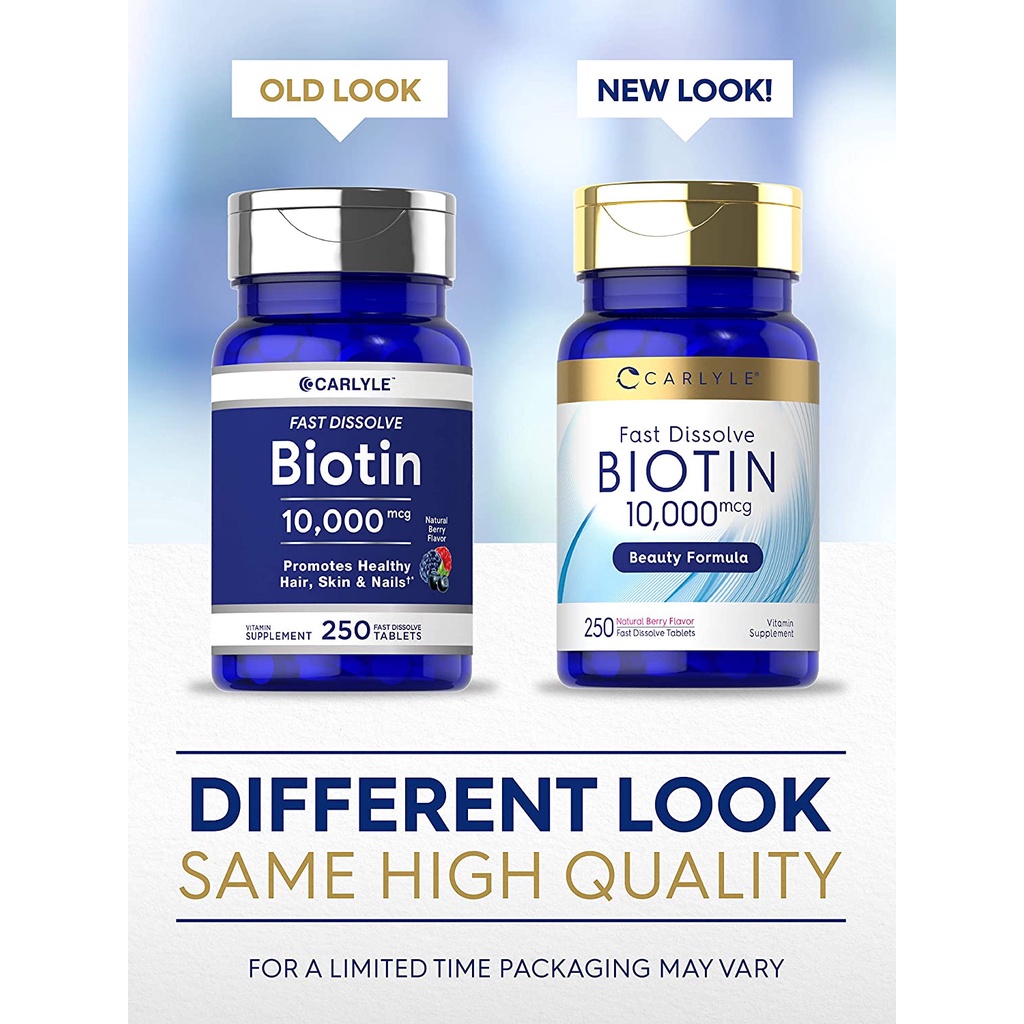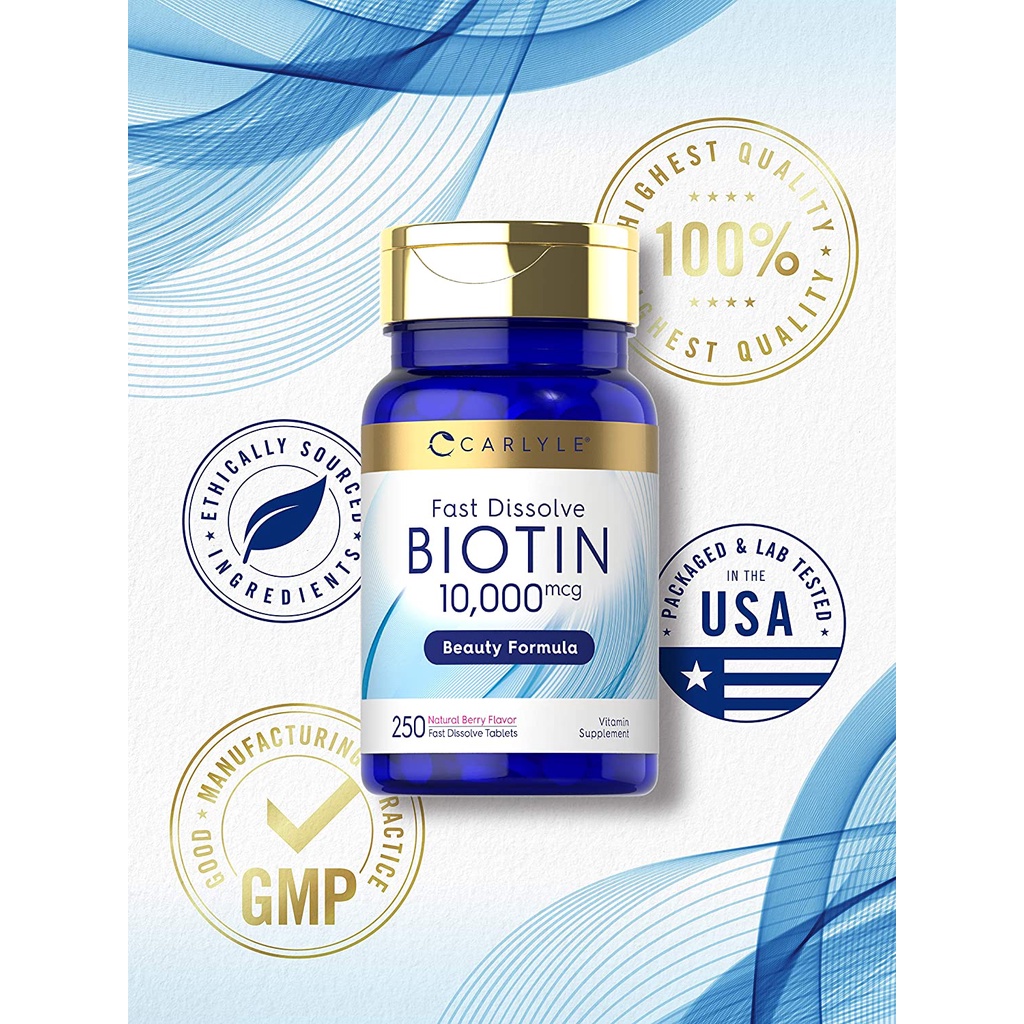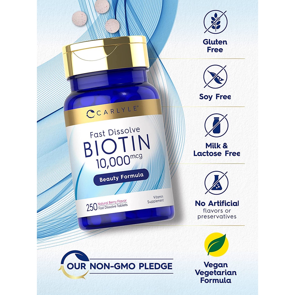 Carlyle Fast Dissolve Biotin 10,000 mcg 250 tablets ไบโอติน บำรุงผม ผิว เล็บ ลดผมร่วง เพิ่มความแข็งแรง เงางามของเส้นผม