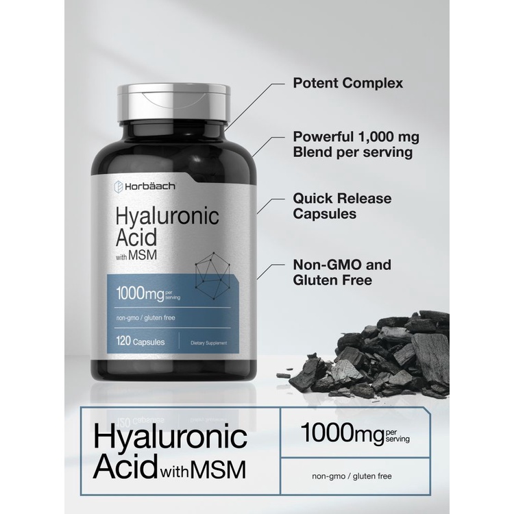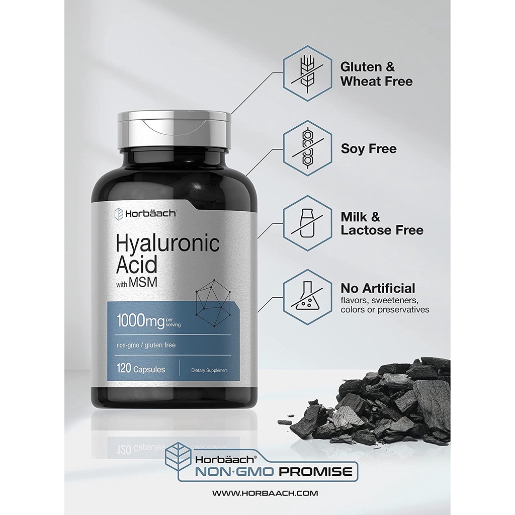 Horbaach Hyaluronic Acid with MSM 1000 mg 120 แคปซูล กรดไฮยาลูรอนิก วิตามินผิวบำรุงข้อต่อ เพิ่มความชุ่มชื้น ลดริ้วรอย