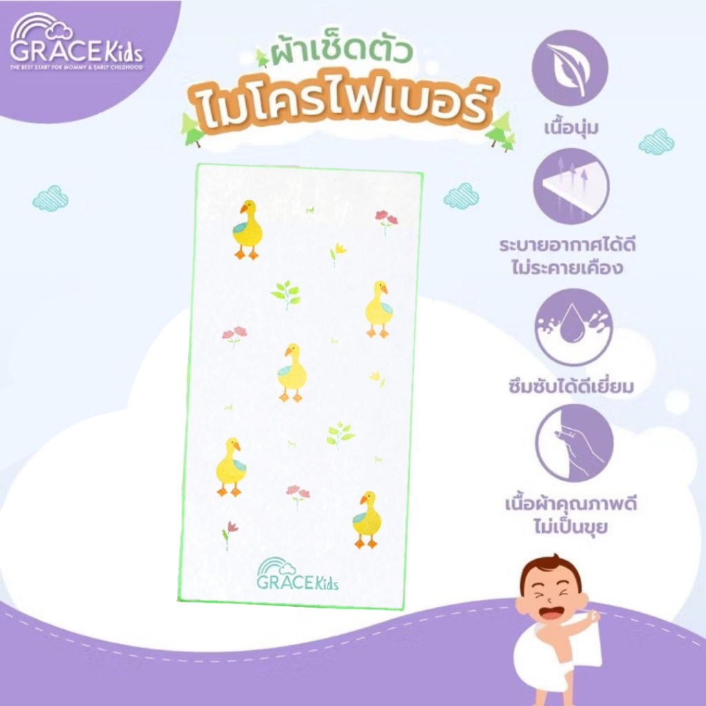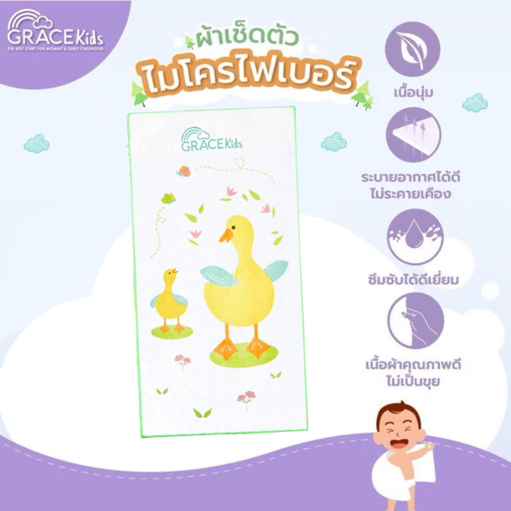 ผ้าเช็ดตัวเด็ก เนื้อผ้านาโน Gracekids เนื้อผ้านุ่ม ซึมชับน้ำได้ดีกว่าผ้าขนหนูทั่วไป ระบายอากาศได้ดี ไม่ทำให้เกิดเชื้อรา