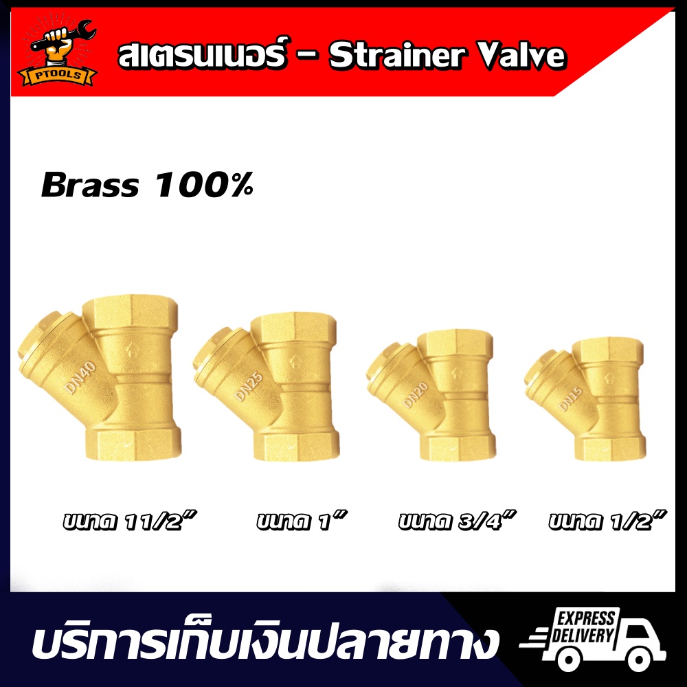 Strainer สแตนเนอร์ ทองเหลือง ขนาด 1-1/2" 1" 3/4" 1/2" สำหรับระบบท่อประปาและเกษตร (Ball Foot Spring Swing Check Valve)